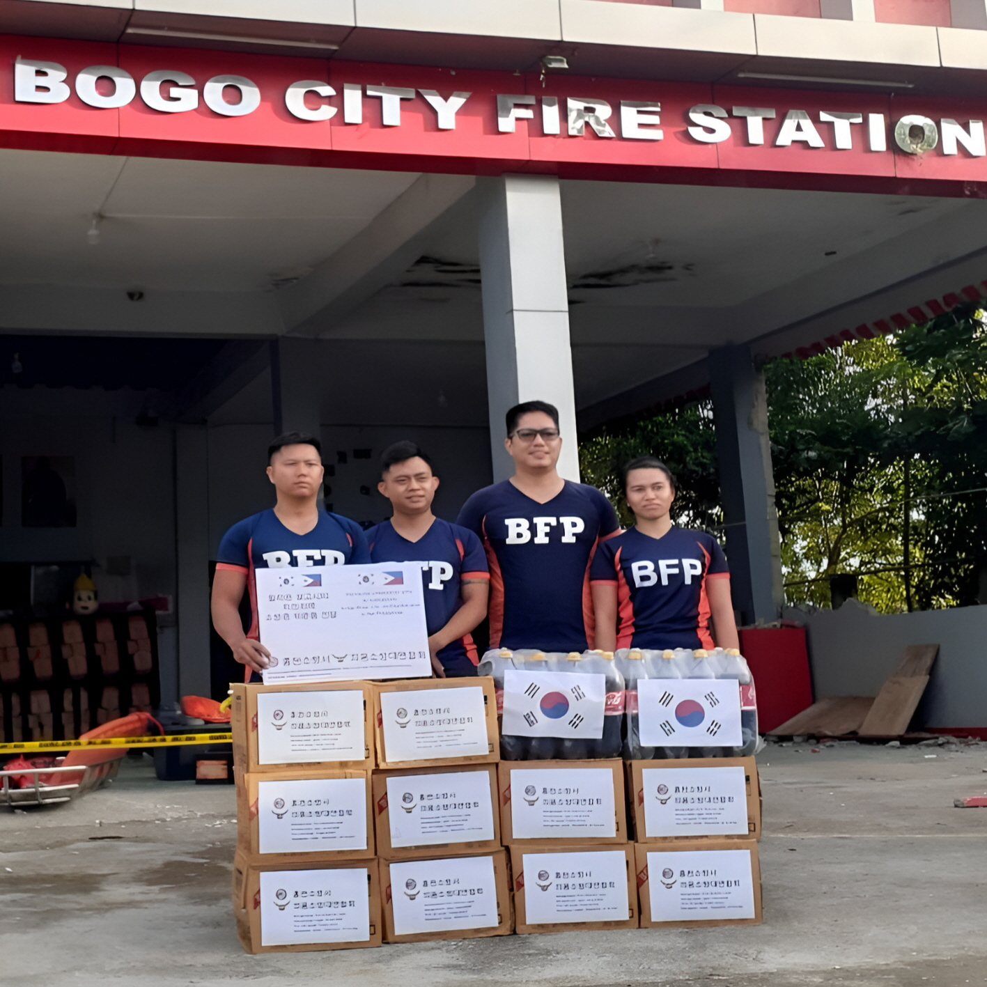 홍천소방서(서장 이강우)와 홍천소방서 의용소방대 연합회(회장 조덕연·박홍숙)는 10월 14일 최근 대형 지진으로 피해를 입은 필리핀 세부 보고시티(Bogo City) 소방서에 50만 원 상당의 위문 및 격려 물품을 전달했다고 밝혔다.
