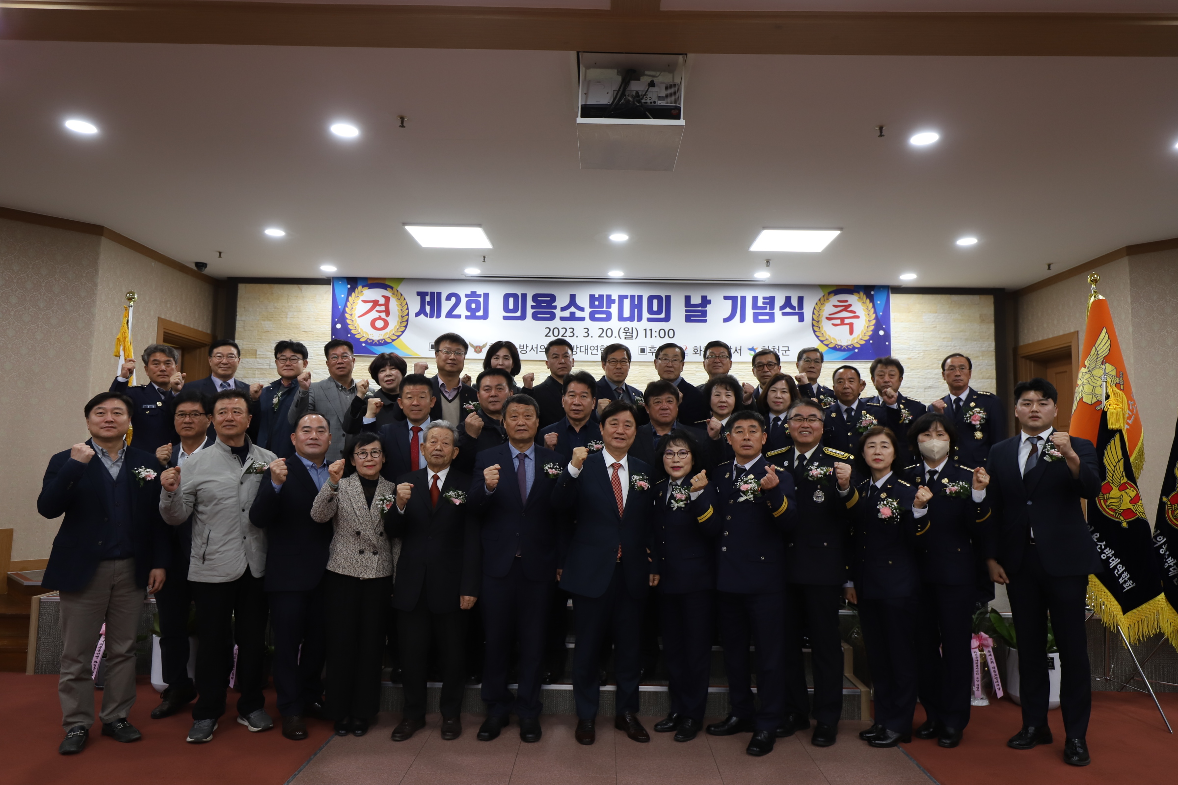 화천소방서(서장 염홍림)는 20일 제2회 ‘의용소방대의 날’을 맞아 최문순 화천군수, 노이업 화천군의회 의장, 박대현 강원도의회 의원, 봉윤일 NH농협은행 화천군지부장, 이선희 화천군의회 부의장등 군의원을 비롯한 지역사회 내빈등이 참석한 가운데 기념행사를 개최하고 유공 의용소방대원에 대한 표창장을 수여했다고 밝혔다.