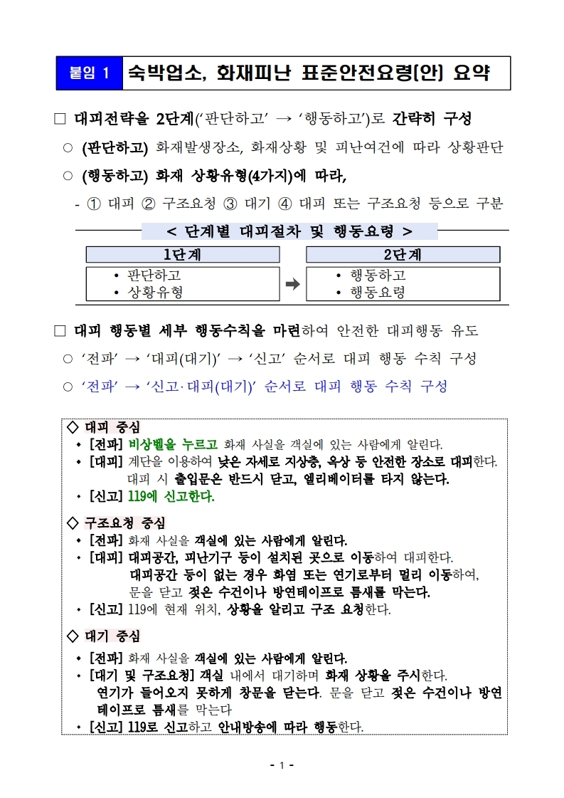 숙박업소 화재피난 표준행동요령(안) - 1