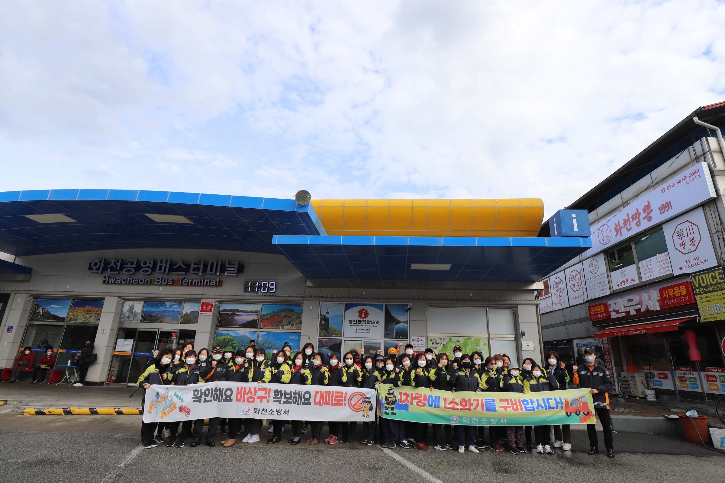 캠페인은 추워지는 날씨에 따라 화기 취급이 늘고 화재 위험 또한 증가할 겨울철을 맞아 범군민 화재 예방 분위기 조성을 위해 추진됐다. 소방서 직원 13명과 의용소방대원 30명을 동원해 화천시장, 화천시외버스터미널, 5일장터에서 화재 예방을 홍보했다.