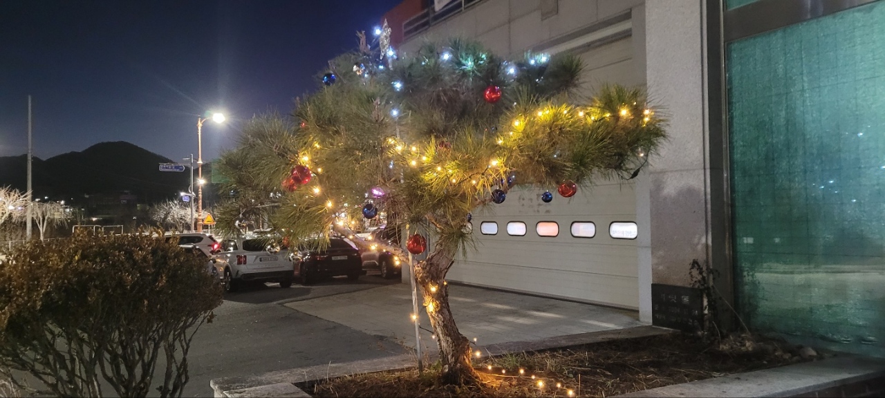 화천소방서 사내119안전센터에서 크리스마스를 맞이하여 사내119안전센터 앞 나무에 크리스마스 장식을 하였다고 합니다 !!