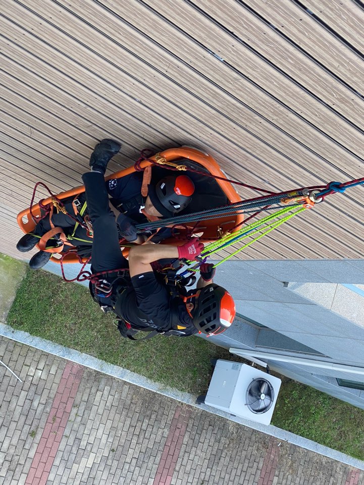 ○ 이번 훈련은 외부기관 구조장비 관련강사 견종훈(데날리컴퍼니 대표) 강사를 초빙하여 다목적구조삼각대를 활용한 훈련을 실시하였다.
