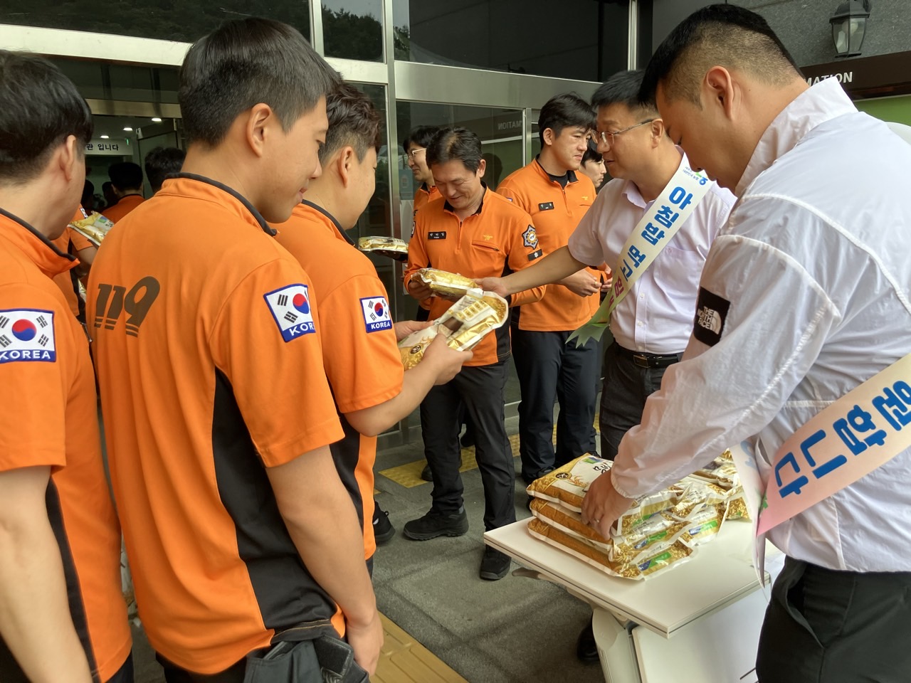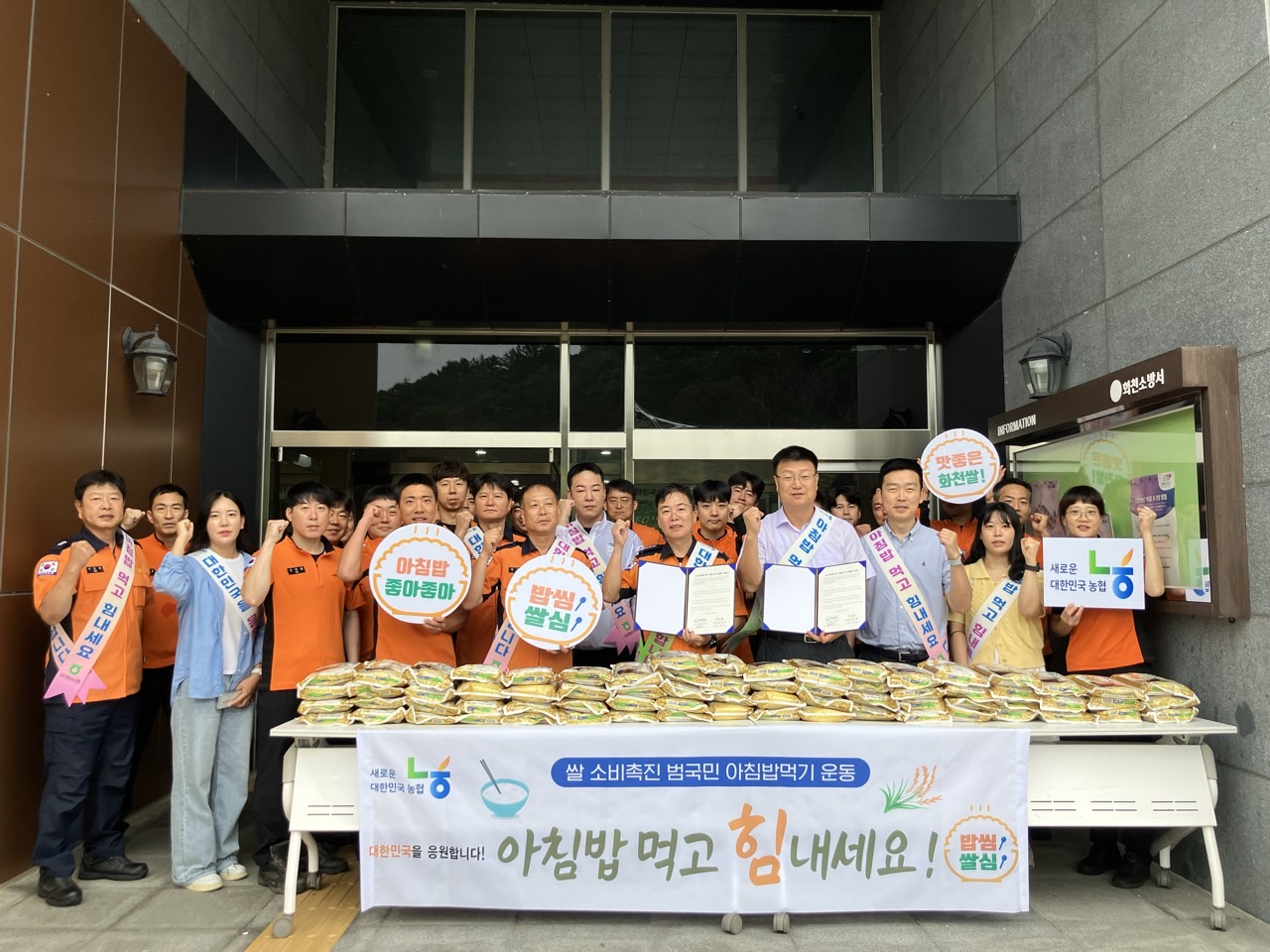 쌀 소비 촉진을 위해 진행된 이번 행사는 소방서 직원들에게 쌀 나눠주기와 협약식 순서로 진행됐습니다.