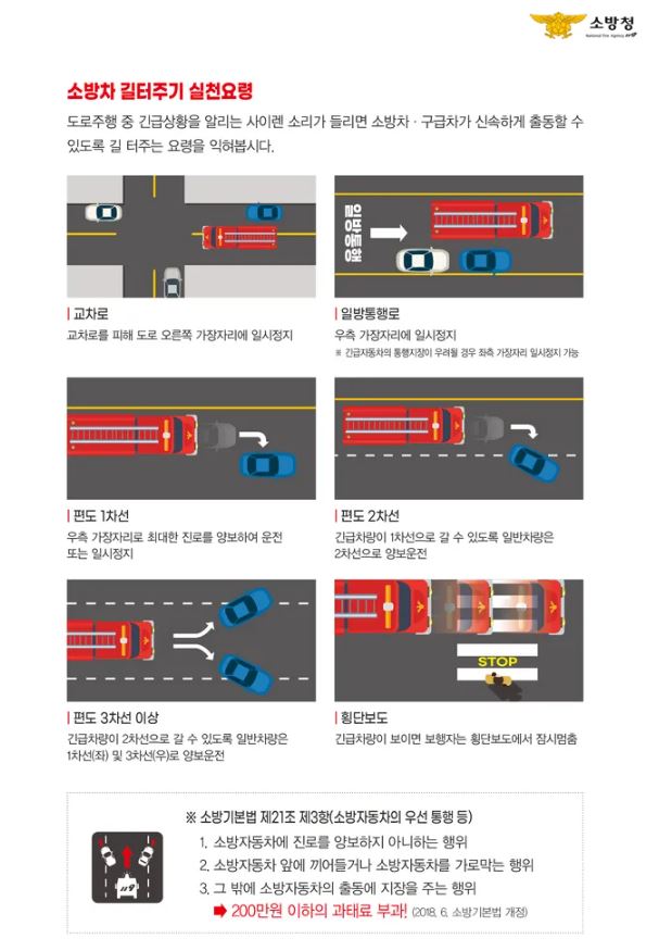 소방차 길 터주기 실천으로 내 가족과 이웃의 생명을 지켜주세요.