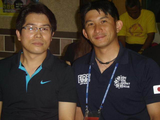 일본선수와 한조를이루어 경합..우정을 과시...