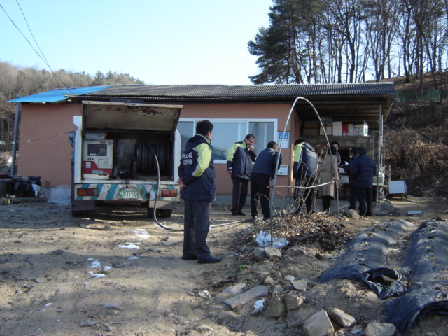 횡성읍 송전리마을에 2가구에 난방유 200L씩 400L(권오선78세, 박춘섭78세)
