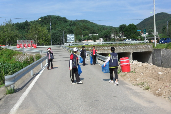 횡성군 전체가 시행하는 국토대청결 운동에 안흥 남.여 의소대 20여명이 참석,
