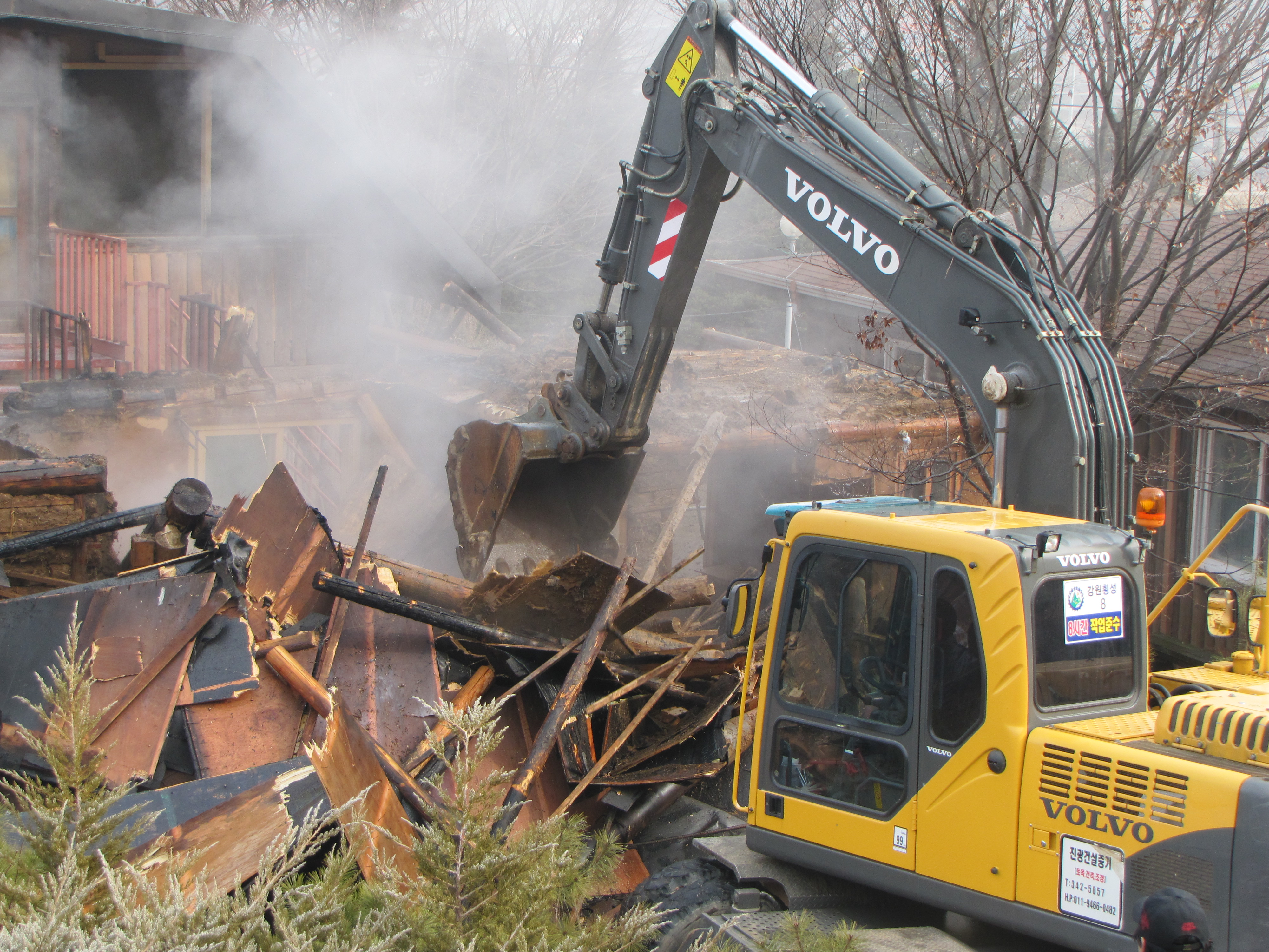 청일면 유평리 375 경성목양관 별관(황토방)화재발생