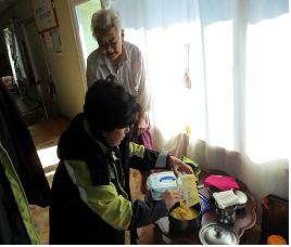 강림여성의용소방대 대장 장주옥외 10명은 강림면 일대 독거노인 및 불우이웃 10가구에 정성스럽게 만든 죽을 전달하고 말벗도 되어드리는 봉사활동을 실시하였습니다.