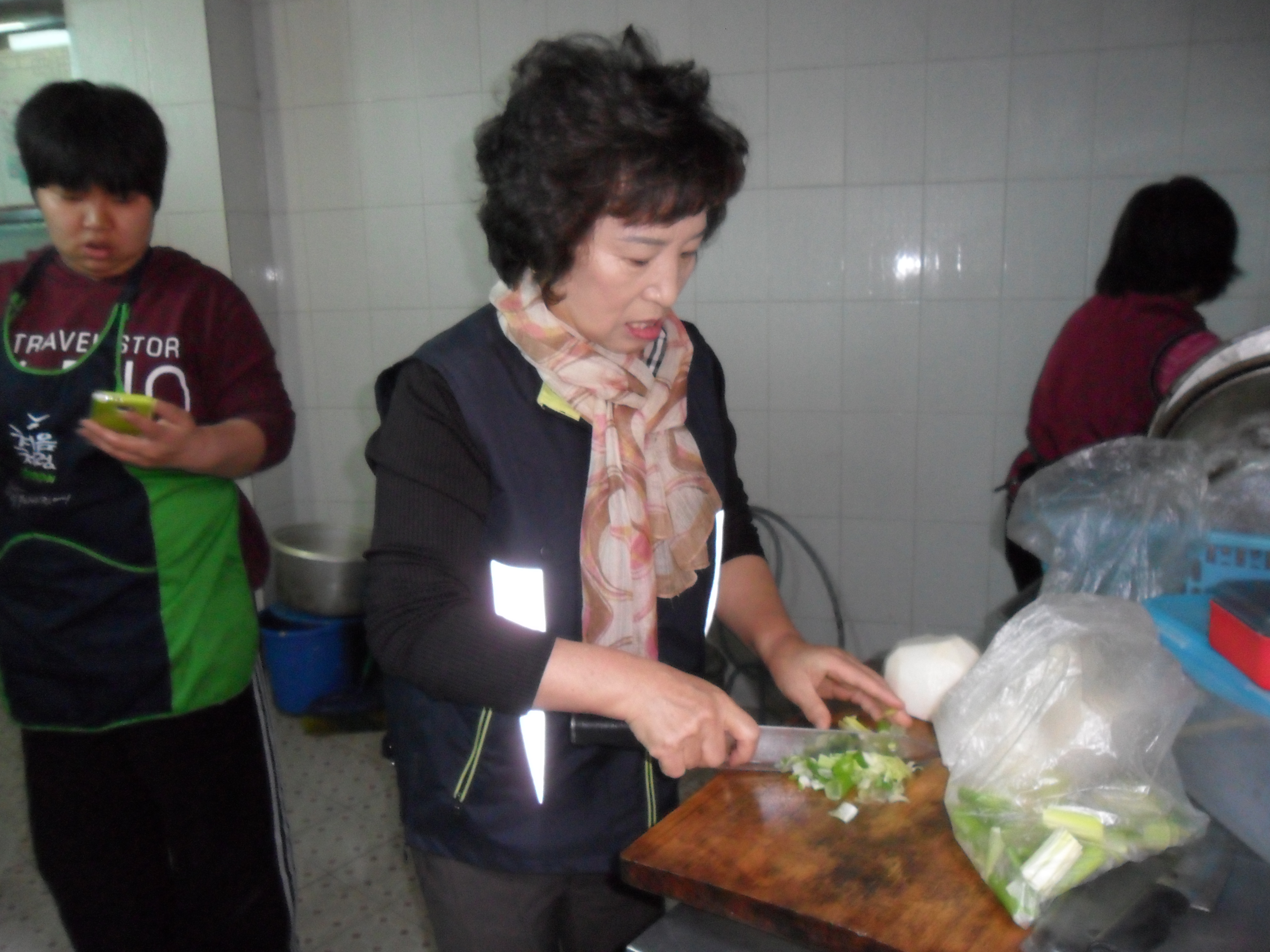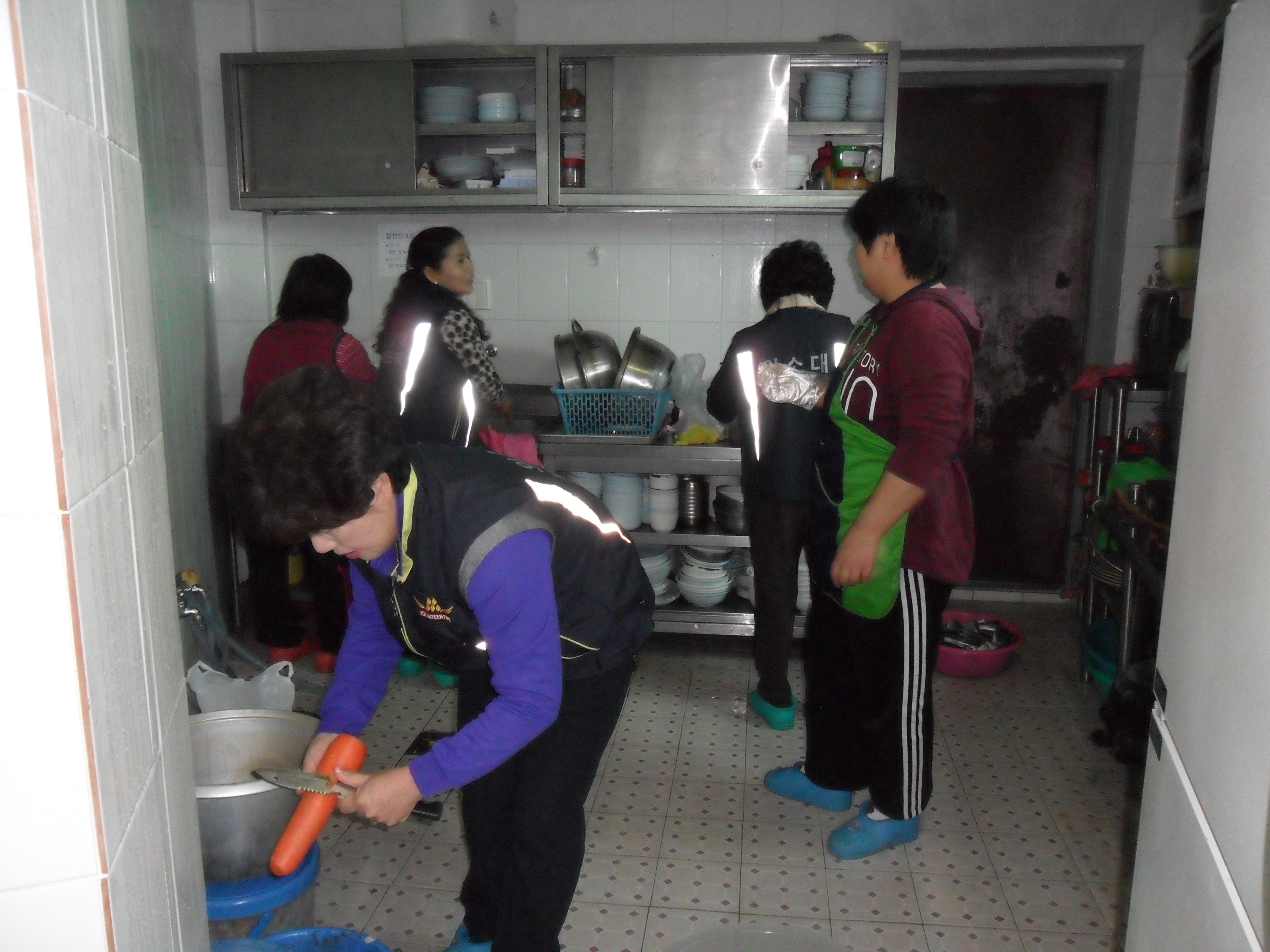 어르신들을 위한 맛있는 식사봉사를 함께 준비하고 배식해