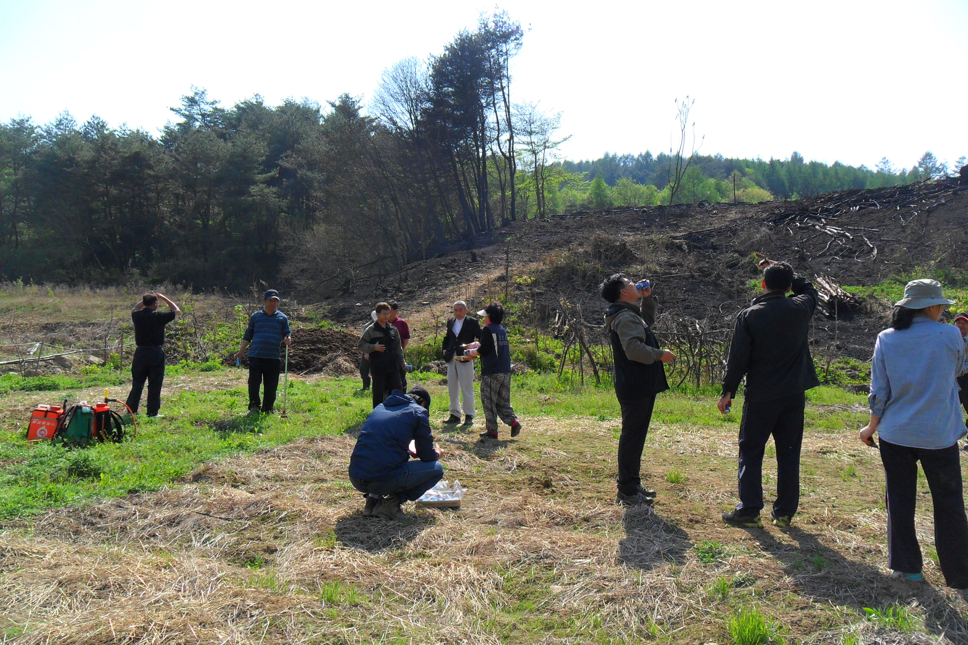 진압현장에서 잔재처리하는 것을 도우면서 음료수와 빵을