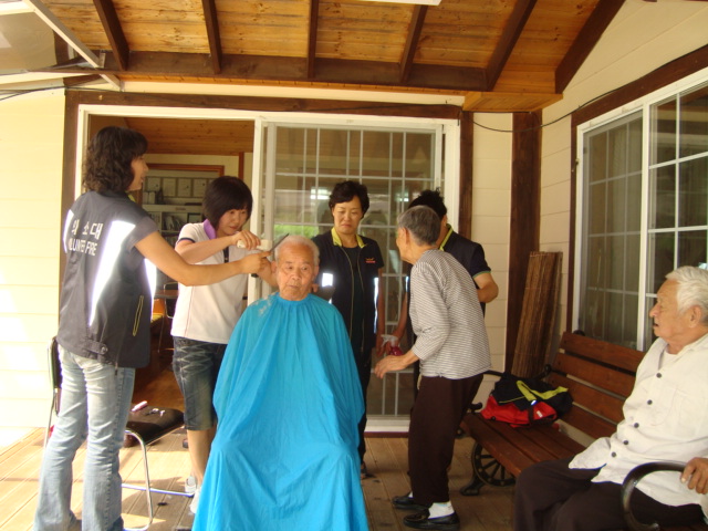 둔내 여성의용소방대 ( 대 장 : 고 복 란 ) 에서는 새힘터 노양원 어른신들의 머리를 단정