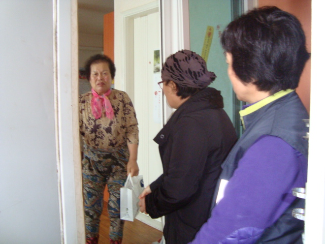 독거노인분들에게 만두와 가래떡을 드렸습니다.