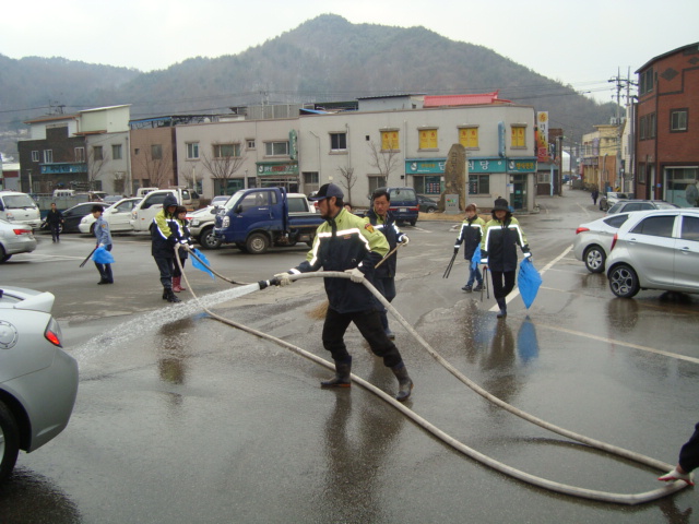 2013년4월11일09:30부터 둔내시내 물청소를