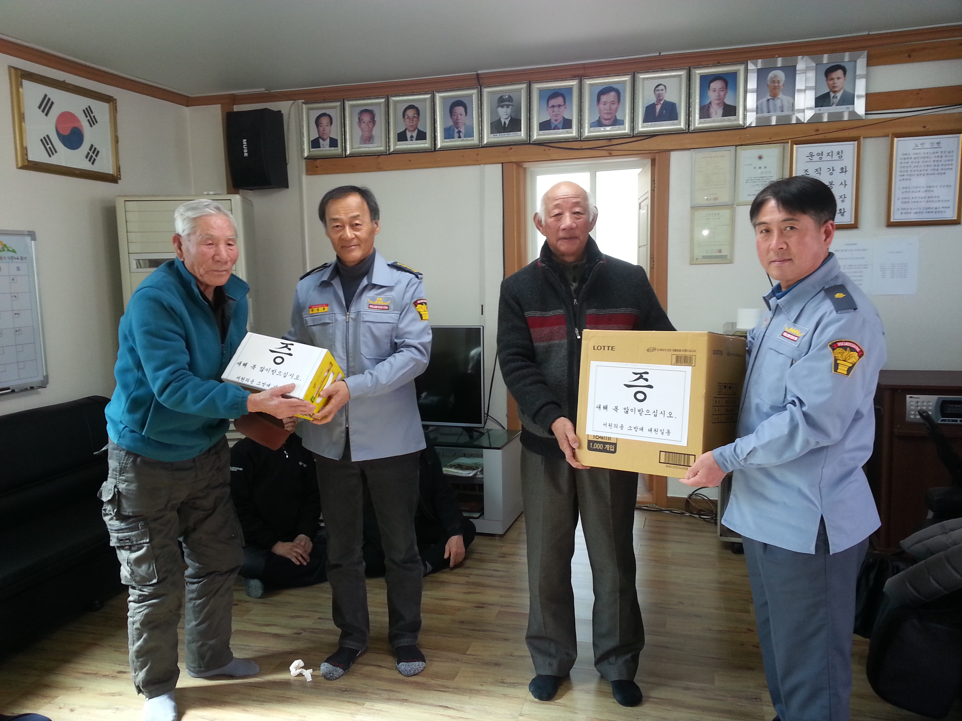 횡성소방서(서장 원미숙) 서원남성의용소방대(대장 한승달)에서는 신년을 맞이하여 2016년 2월 24일(수) 10시부터 남성의용소방대장 한승달 외 5명은 서원면 관내 노인회관 12개소를 방문 마을 어르신에게 세배드리기 및 격려품을 전달하는 행사를 가졌다.