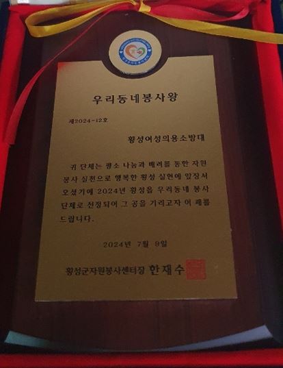 횡성여성의용소방대, 7월 우리동네 봉사왕 수상