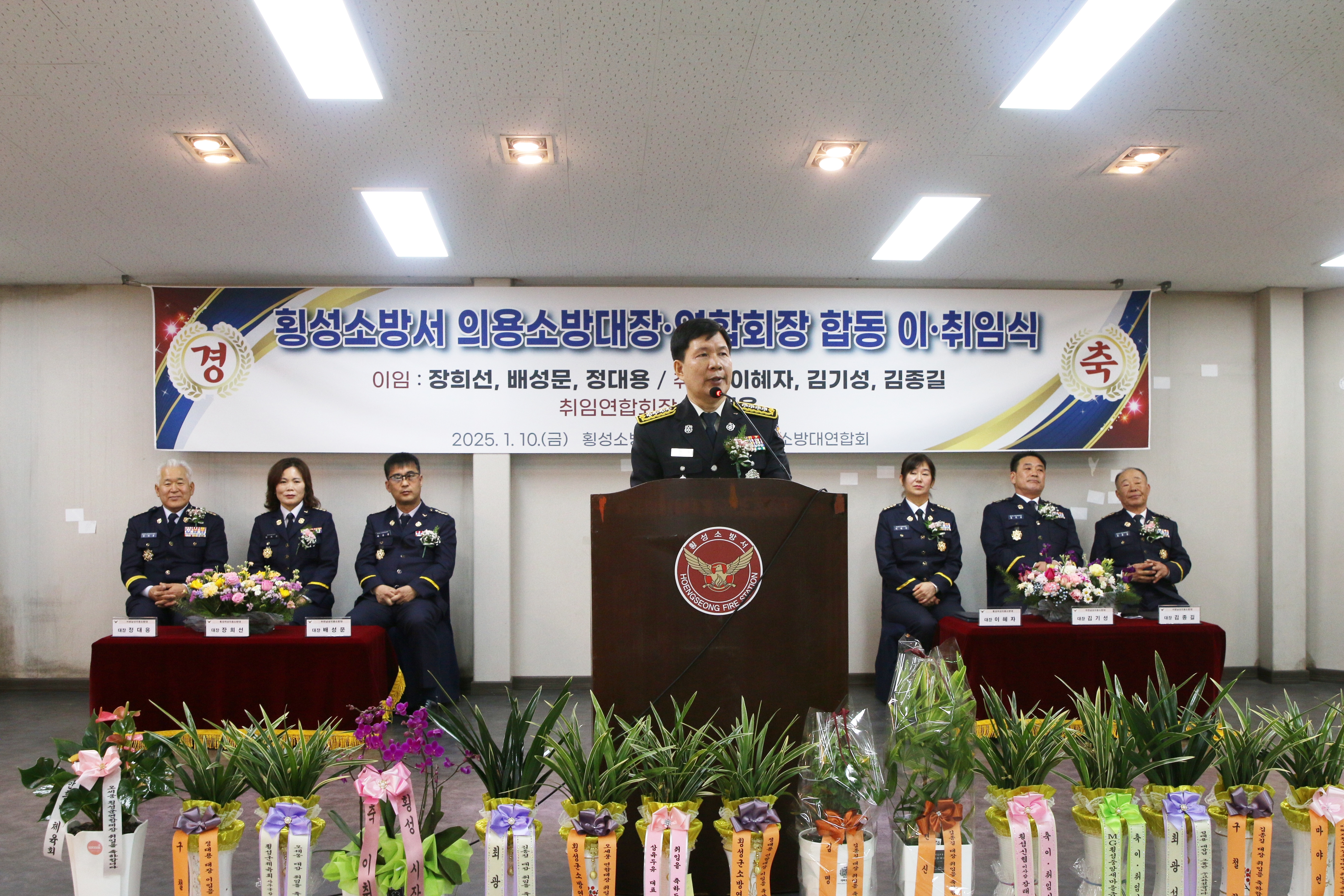 1월 10일 11시 횡성향교웨딩홀에서 횡성군수,도의원, 군의원 및 의용소방대원 등 200여명이 참석한 가운데 의용소방대장 합동 이·취임식 행사를 실시했습니다.