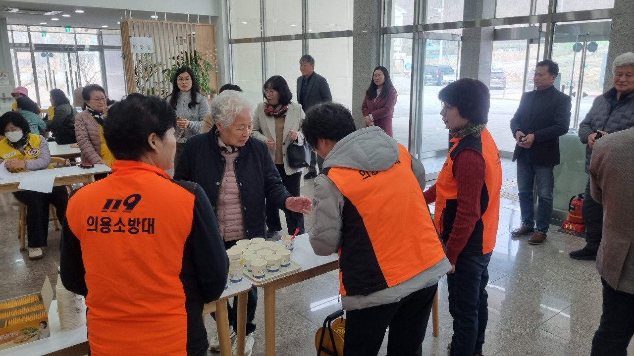 서원여성의용소방대는 3월 13일 서원면 은빛대학 개강식에서 어르신들을 위한 음료 봉사 활동을 펼쳤습니다.