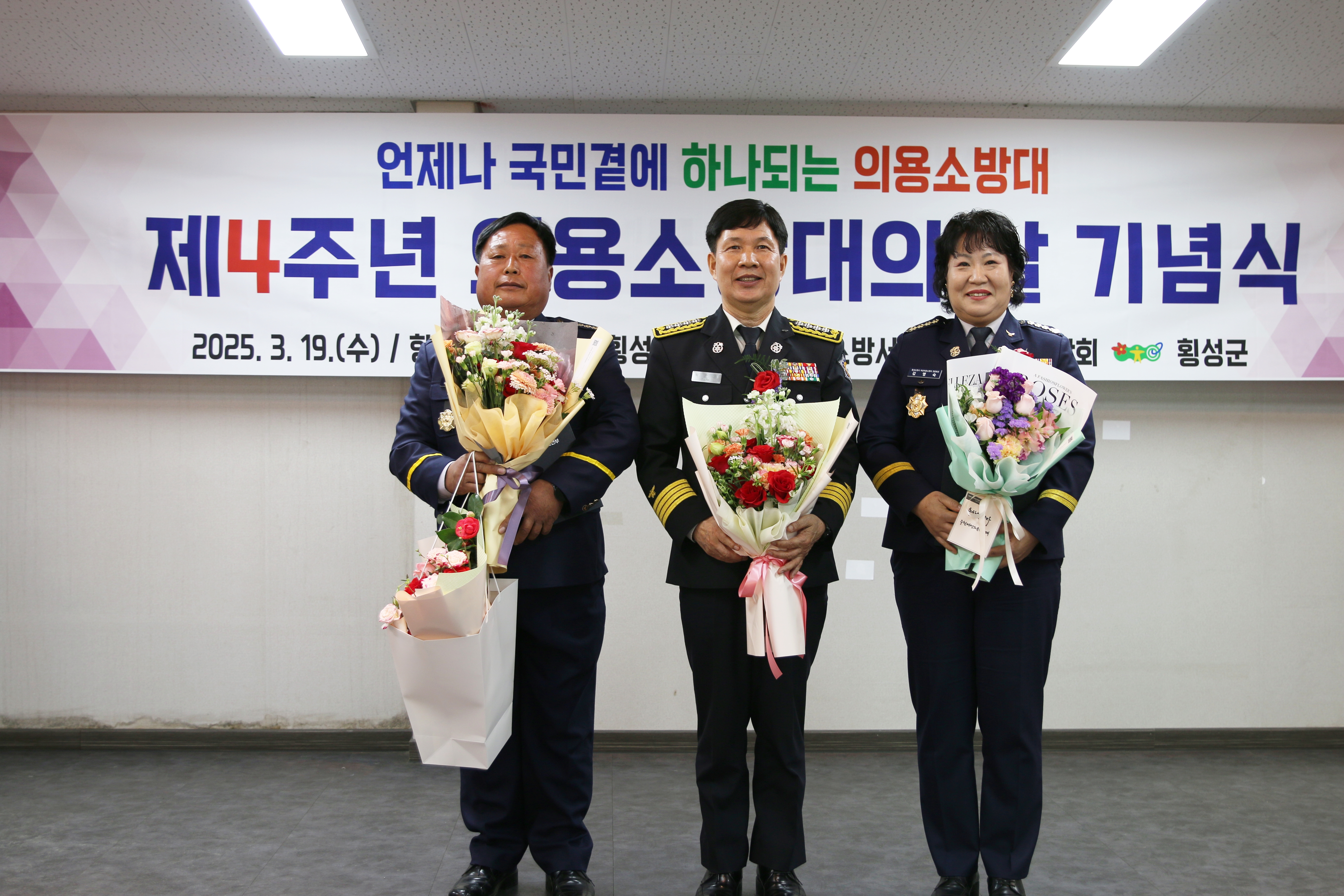 제 4회 의용소방대의 날 기념행사가 3.19.(수) 10:30~ 향교웨딩홀에서 성대하게 개최되었습니다.