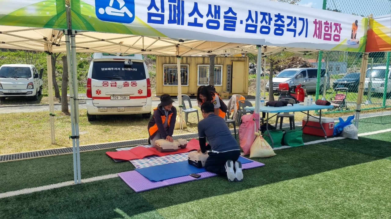 서원여성의용소방대, 서원면 한마음 체육대회서 심폐소생술 체험 부스 운영