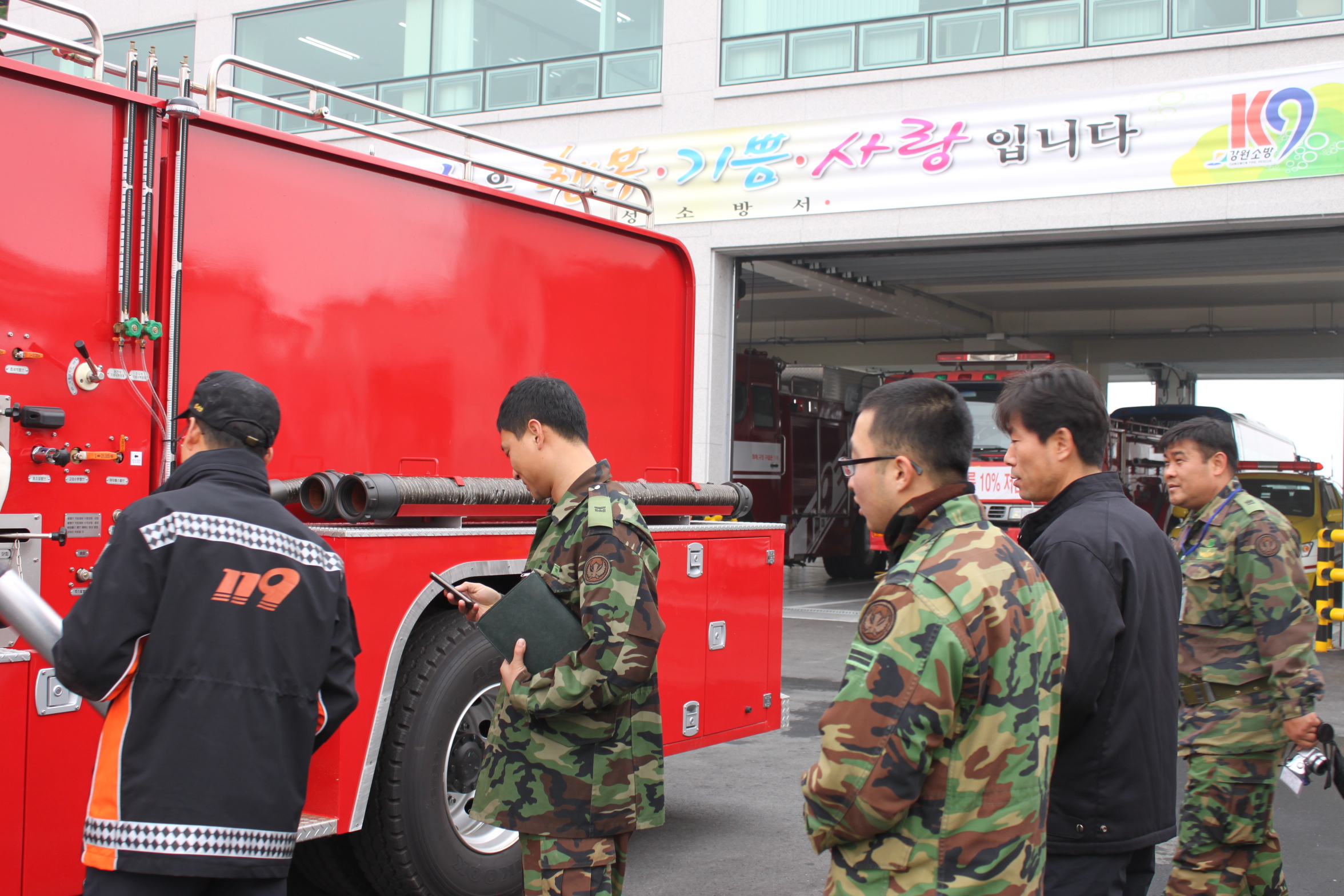 횡성소방서(서장 조근희)는 12. 6(월) 횡성소방서에서 제71항공 정비대대 장병을 대상으로 소방차 조작훈련 등 화재진압교육을 실시했습니다.