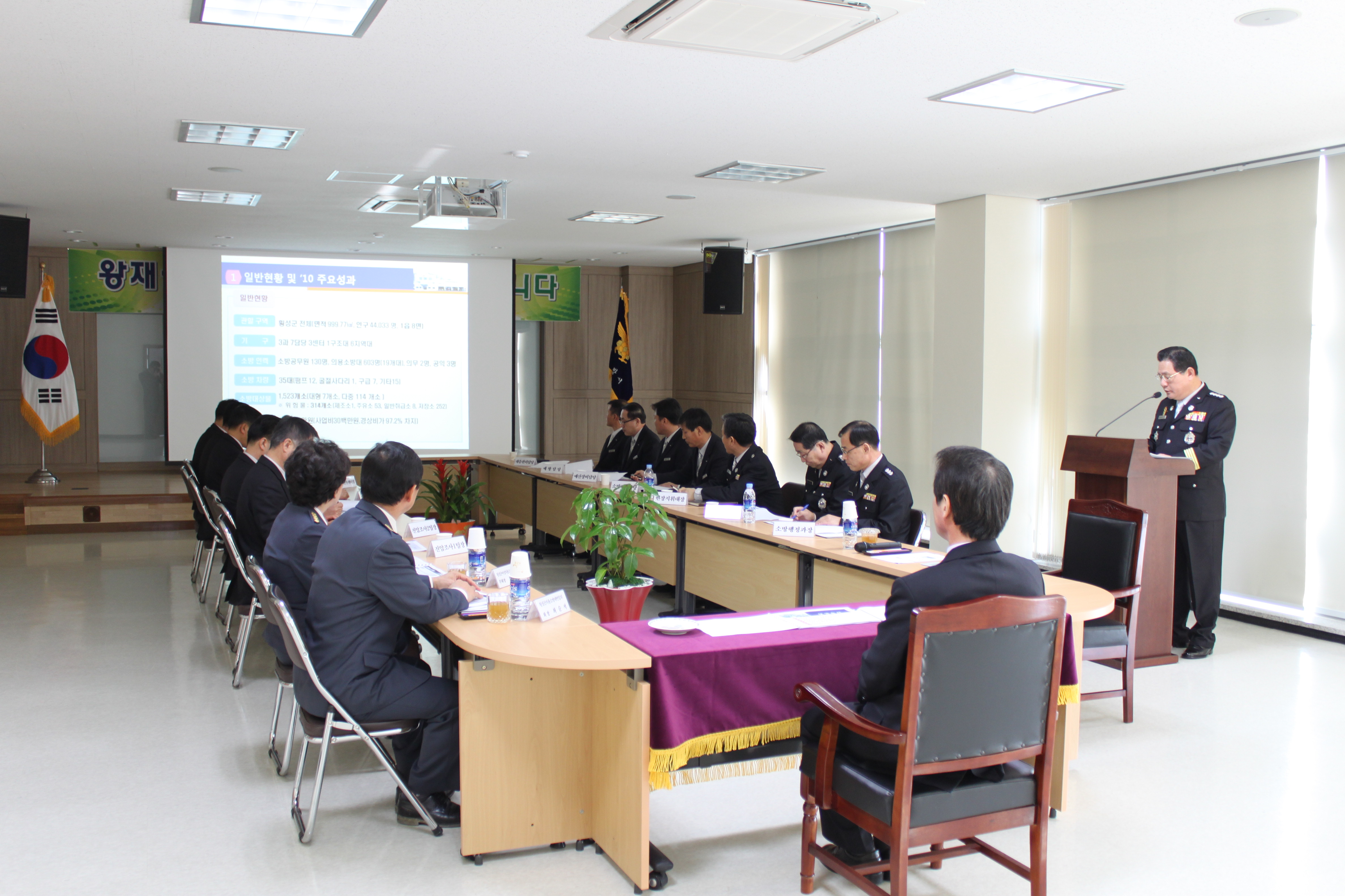 횡성소방서(서장 : 조근희)에 왕재섭 강원도 소방본부장님께서 방문하셔서 업무보고를 받으시고 우리 소방의 현실과 더욱 발전할 수 있는 추진방향을 말씀하셨습니다.
