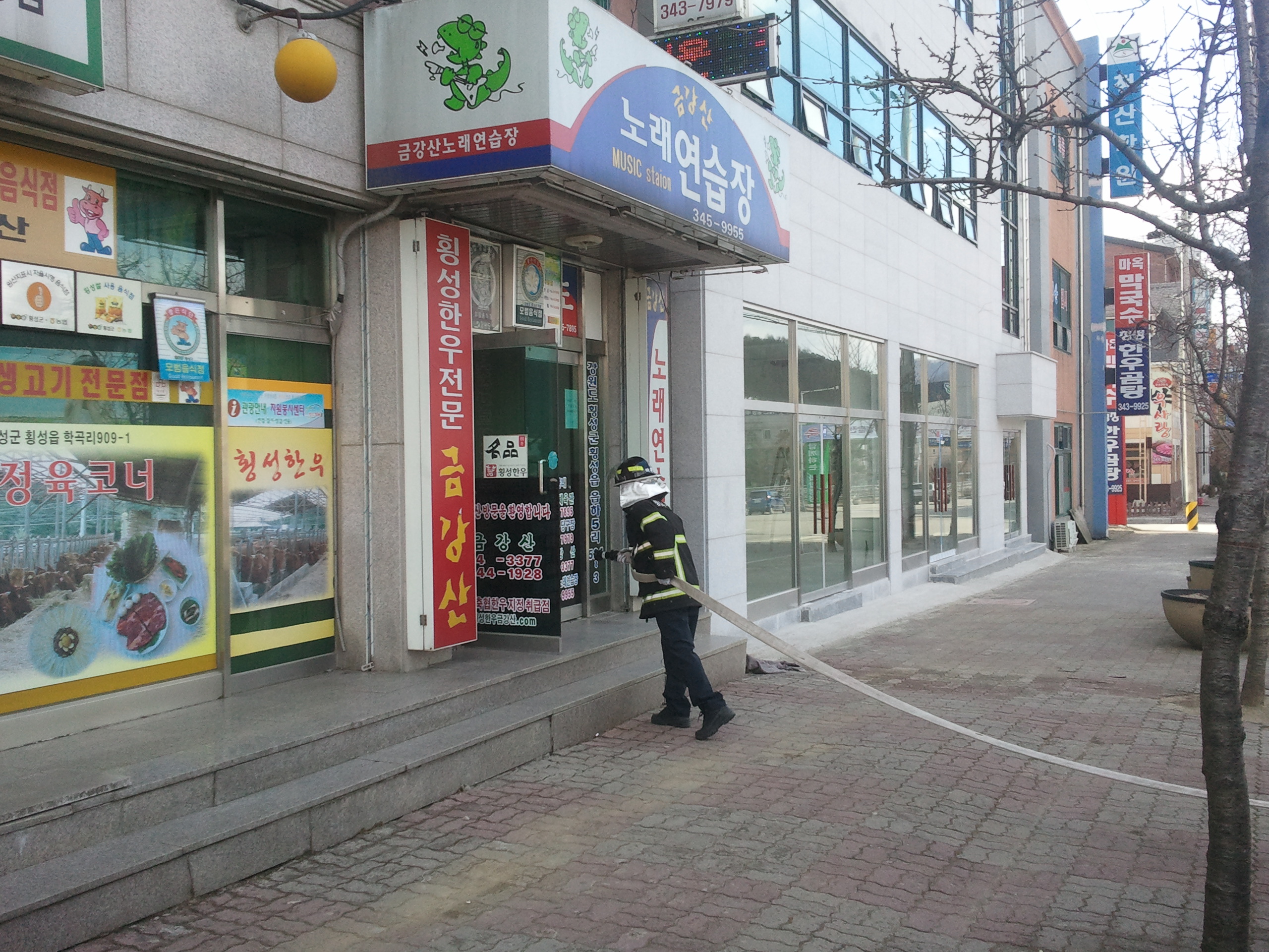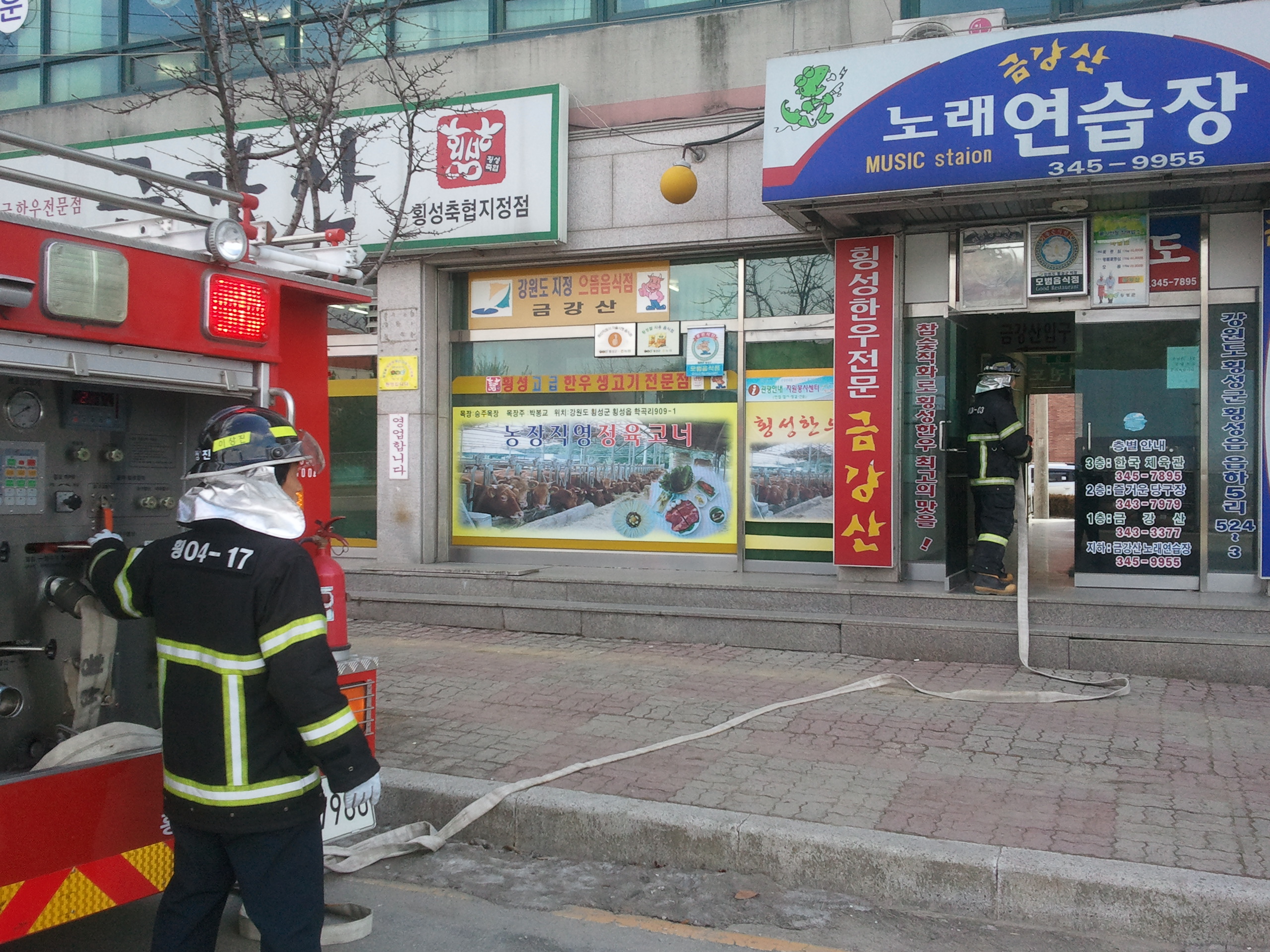 횡성소방서(서장:조근희) 횡성119안전센터에서는 2011.3.2(수) 금강산노래방에 대한 다중이용업소 현지적응 출동훈련을 실시하였습니다.
