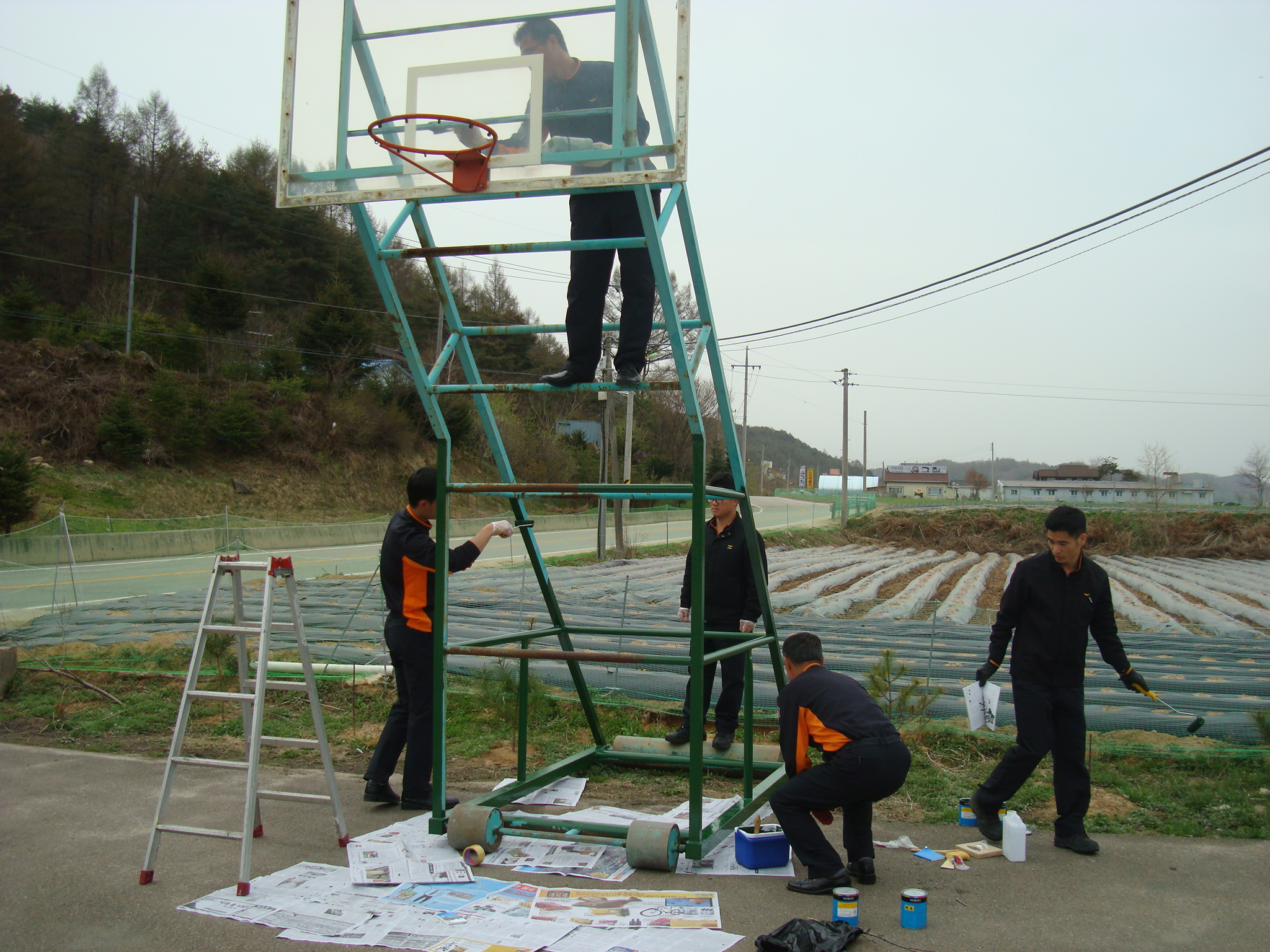 횡성소방서(서장:조근희) 둔내119안전센터에서는 2011.05.05.(수)10:00 차고 앞에서 낡은 농구대를 직접 도색작업하였고 링줄도 설치하였습니다. 체력 단련과 직원간의 팀웍 향상에 앞장서겠습니다.