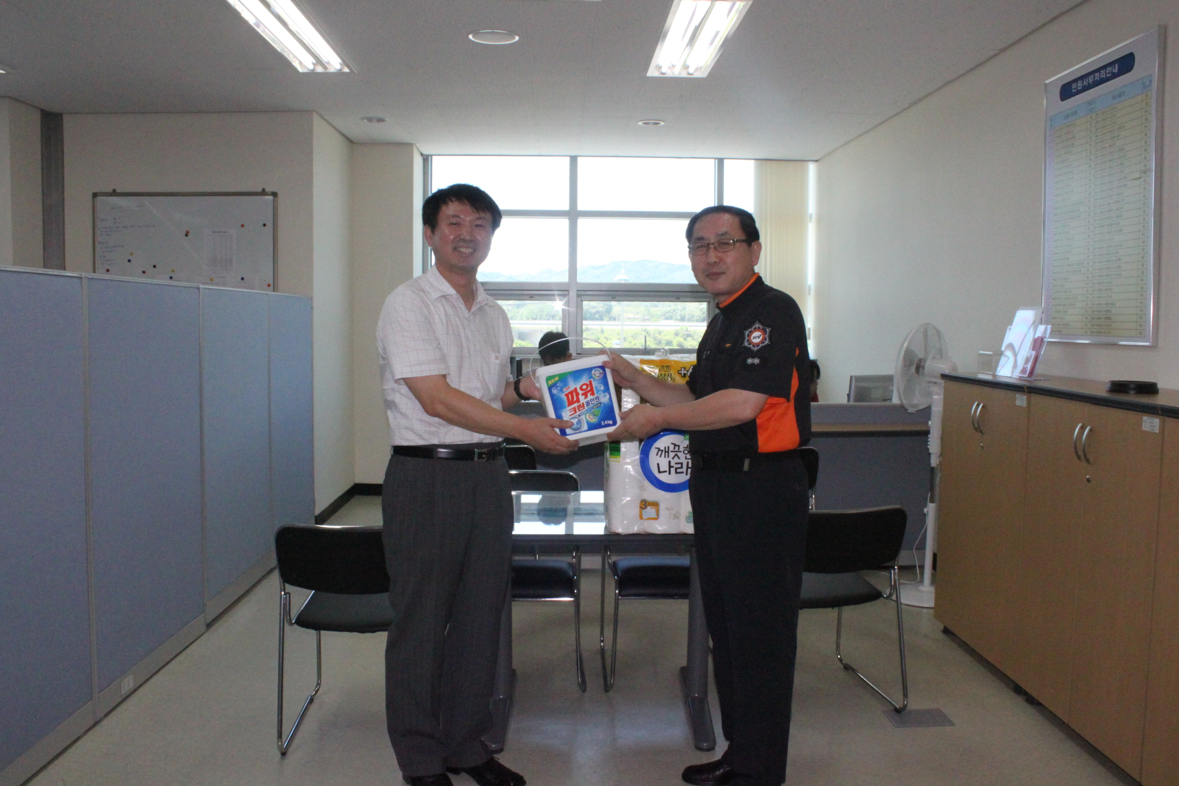 횡성소방서(서장 : 조근희) 예방안전과는 20일 소방업무수행 설문 응모권 당첨자에게 상품(화장지, 세제)을 전달하였습니다.