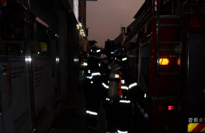 횡성소방서(서장 조근희) 횡성119안전센터에서는 2011.10.17(월) 19:00 읍하리 낙원주점을 대상으로 현장적응출동훈련을 실시하였습니다. 훈련에 앞서 영상도상훈련을 실시하며 신속하면서도 철저하게 훈련에 임하였습니다. 훈련내용으로는 현장에 도착 즉시 가상화점을 정하여 호스전개및 방수전개하여 진압태세를 갖추었으며 훈련종료후 관계자 소화기및 소방안전교육을 실시하여 화재대비에 만전을 기하였습니다.