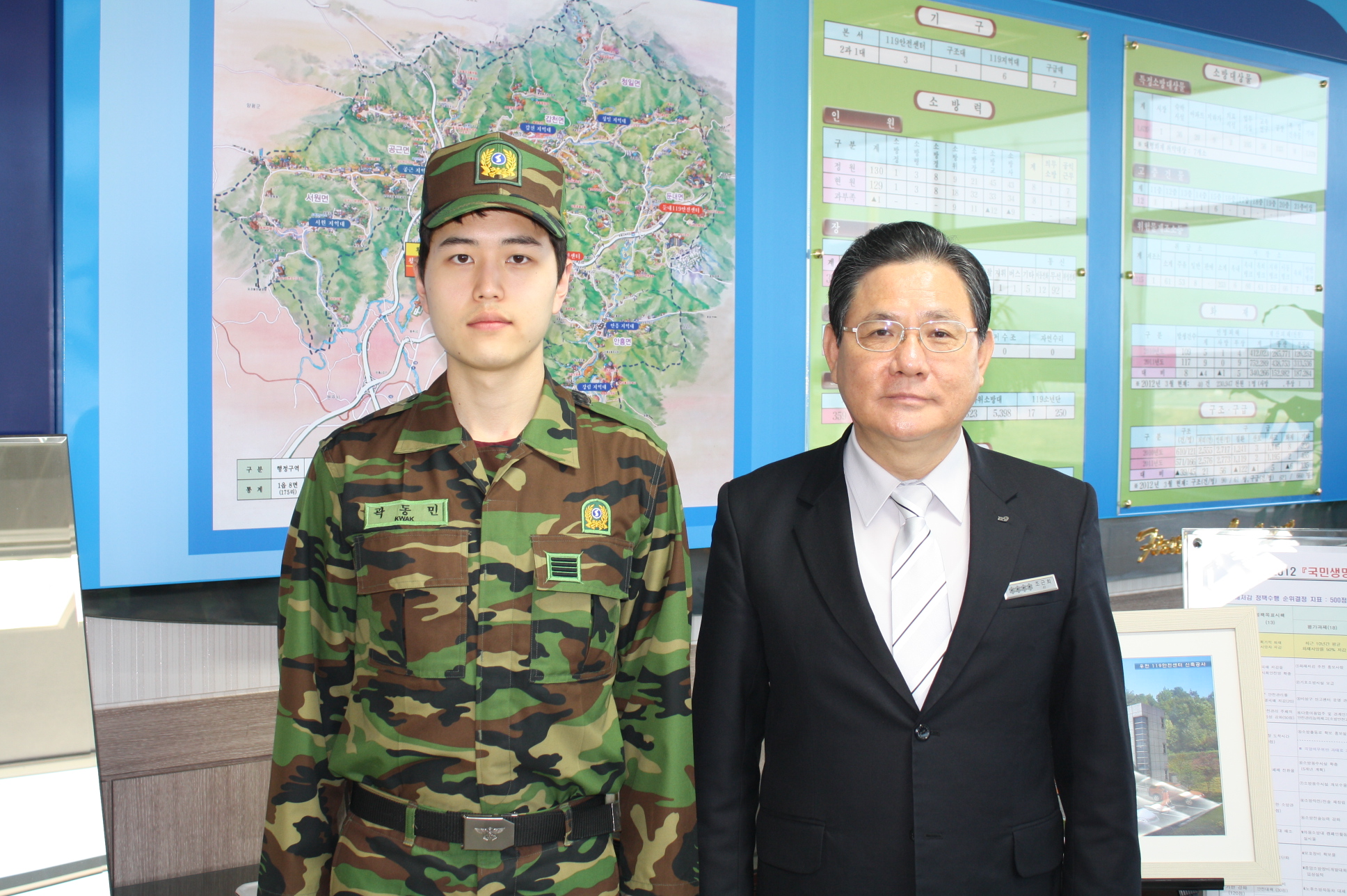 횡성소방서(서장 조근희)는 2010년 5월 6일에 입대하여 2년여간 횡성소방서를 위해 열심히 일하며 2012년 4월 17일자로 전역하게 된 수방 곽동민에 대한 전역신고식 및 전역기념패 전달식을 실시하였습니다.