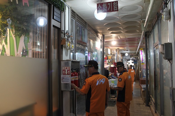 이날 소방서는 ▲비상소화전함 관창과 호스정비ㆍ작동여부 확인 ▲시장통로 내 장애물 이동 조치 ▲소방출동로 확보 홍보 등 각종 시설 안전점검등에 대해 안내하고 전통시장 내 화재를 대비한 관계인의 소방 관련 업무에 적극 협조를 당부했다.