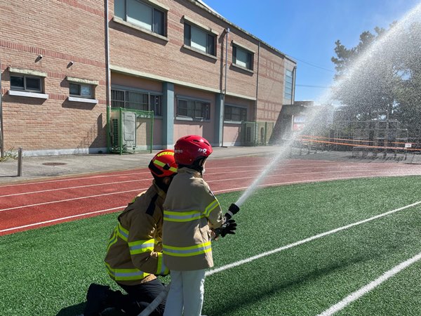미래소방관 체험교실은 ▲소방공무원 소개 및 활동 안내 ▲심폐소생술 이론 및 실습 ▲방화복, 헬멧 등 소방장비 착용 체험 ▲관창 조작을 통한 실제 방수체험 등으로 구성돼 있다.