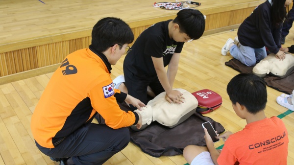 이번 교육은 ▲이동안전체험차량을 통한 지진 및 농연탈출 체험 ▲방수 체험 및 방화복 입어보기 ▲심폐소생술(CPR) 교육 ▲완강기 사용법 교육 등으로 진행됐습니다.