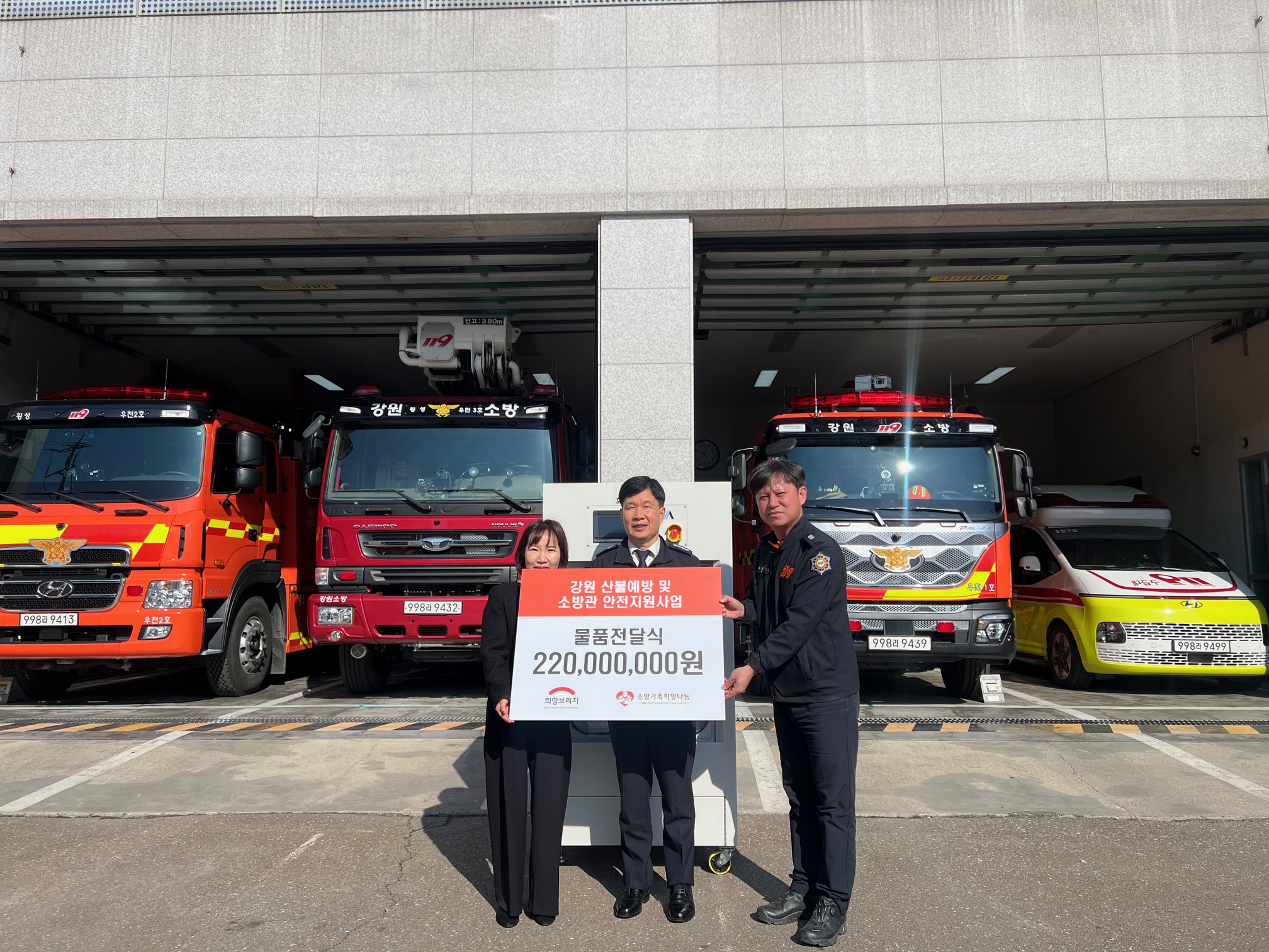 이번 기증을 추진한 소방가족희망나눔은 소방관 유가족 지원 및 소방관 복지를 위한 다양한 활동을 펼치는 비영리단체로, 지난해 강원 산림화재 예방 및 소방관 안전 지원사업의 일환으로 면체세척기 기부를 결정했다.