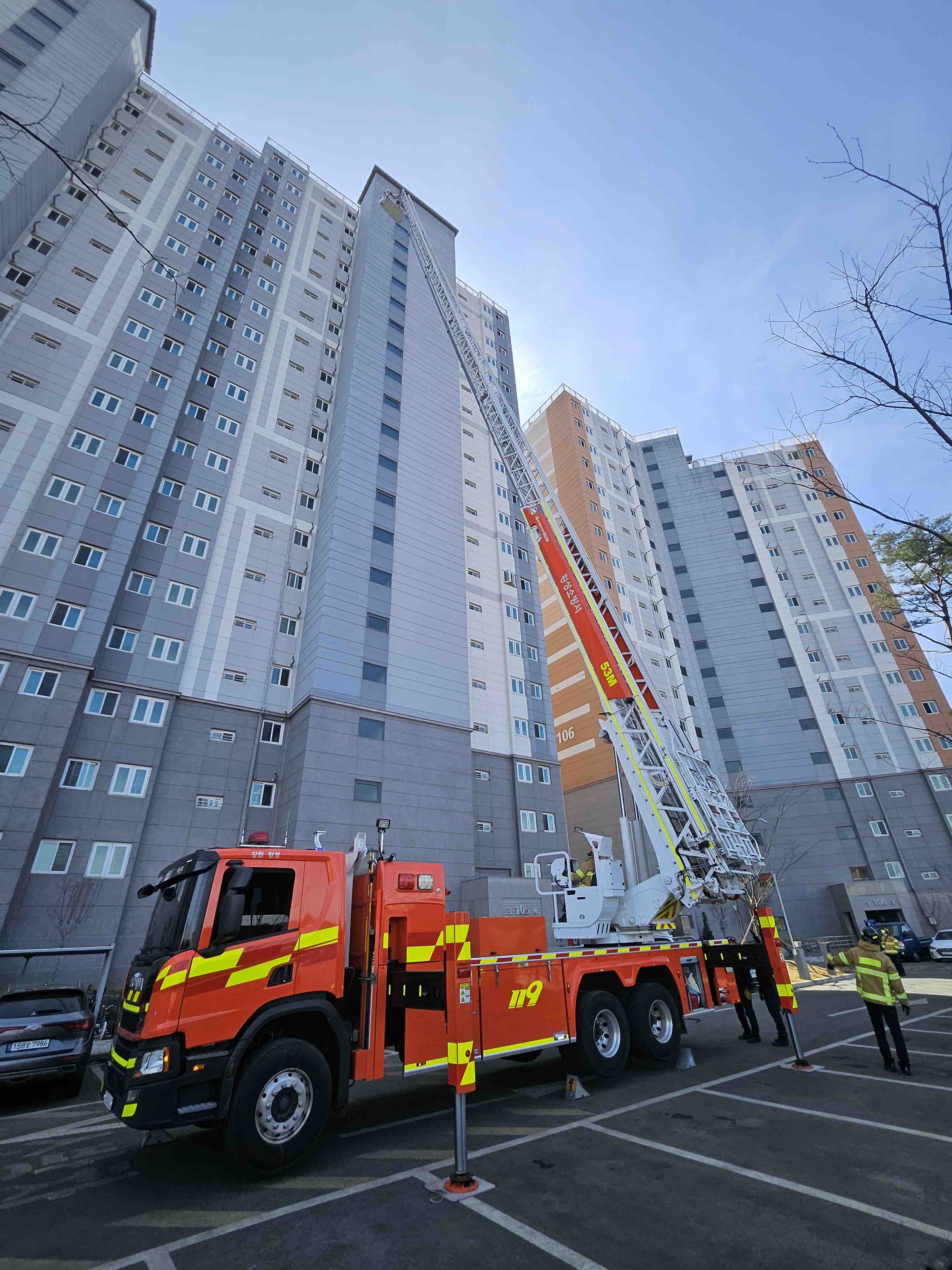 [횡성소방서, 횡성코아루 센트럴퍼스트 앞 실물대응훈련(현지적응훈련)실시]