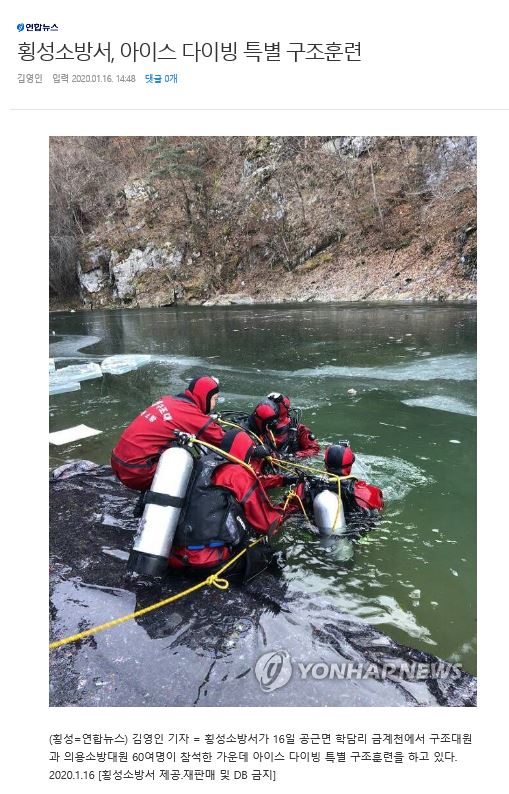 | 2403 | 횡성소방서, 아이스 다이빙 특별 구조 훈련 | 예방민원계 | 2020-01-27 | 677 | |