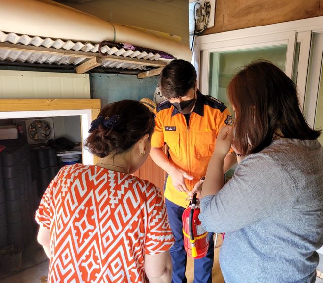 횡성소방서는 지난 6월 13일부터 현재까지 소방사각 지대에 놓은 청각장애인 가구 총57가구에 대해 소화기1개, 보이는 화재감지기2개, 119스티커2점을 한국농아인협회 횡성군지부 사회복지사(수어통역)와 협업하여 방문 설치했습니다.