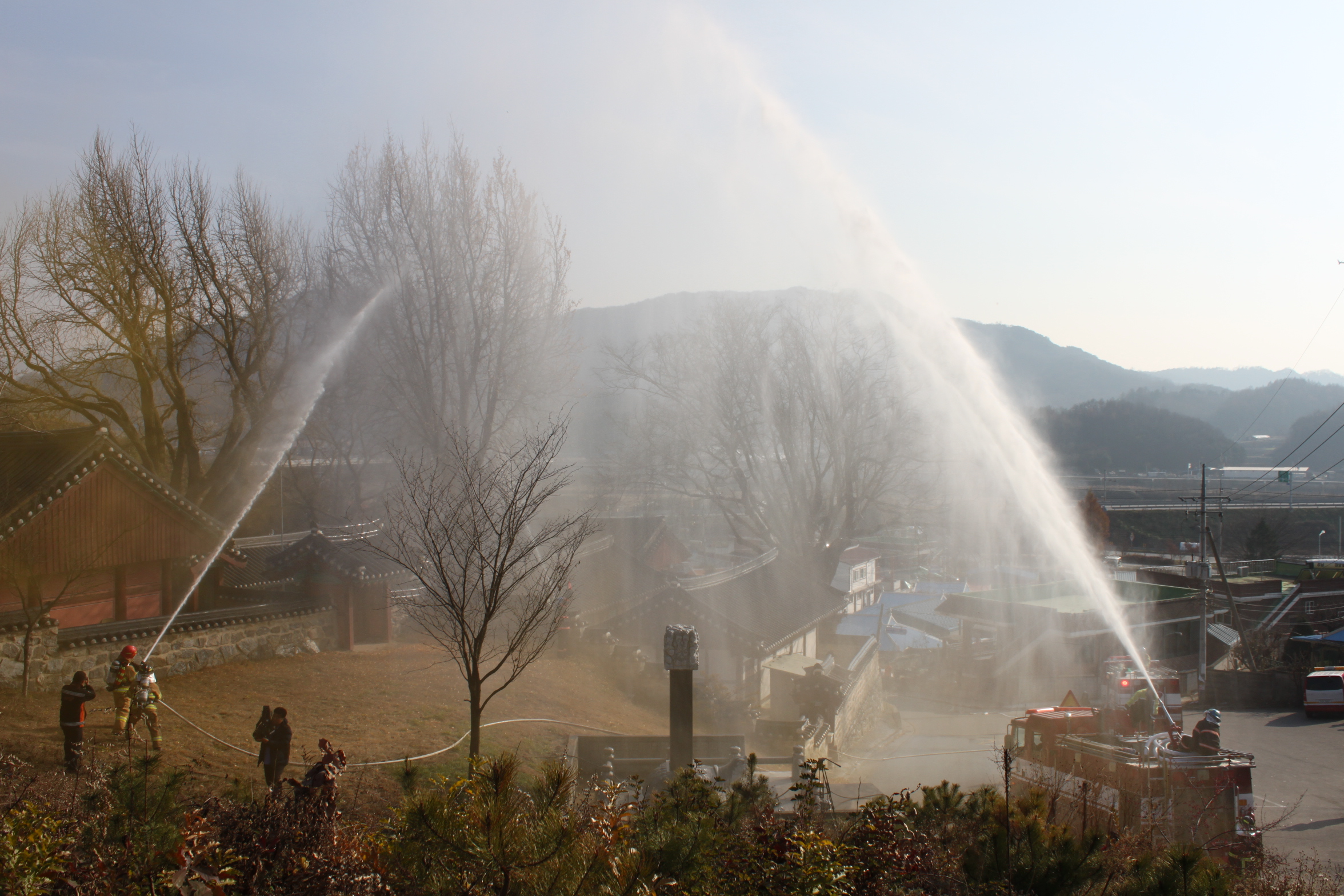 금번 훈련은 우리의 귀중한 목조문화재 시설의 안전한 보호를 위하여 화재 및 산불발생시 초기대응능력 향상 및 현지적응훈련을 통한 재산 및 인명피해를 최소화하고자 추진되었다.
