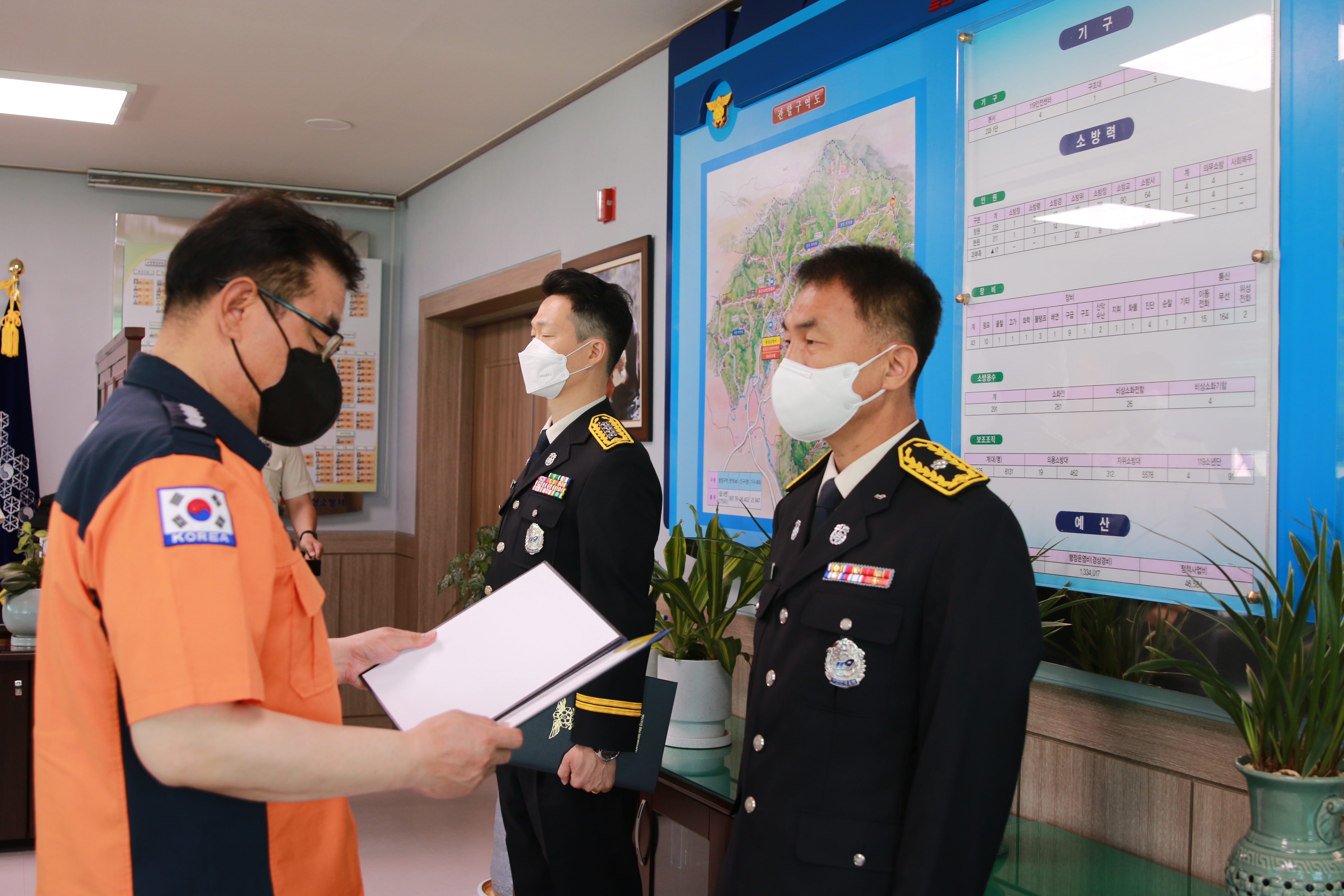 금일 서장님실에서 간소하게 시도교류 행사를 진행했습니다.