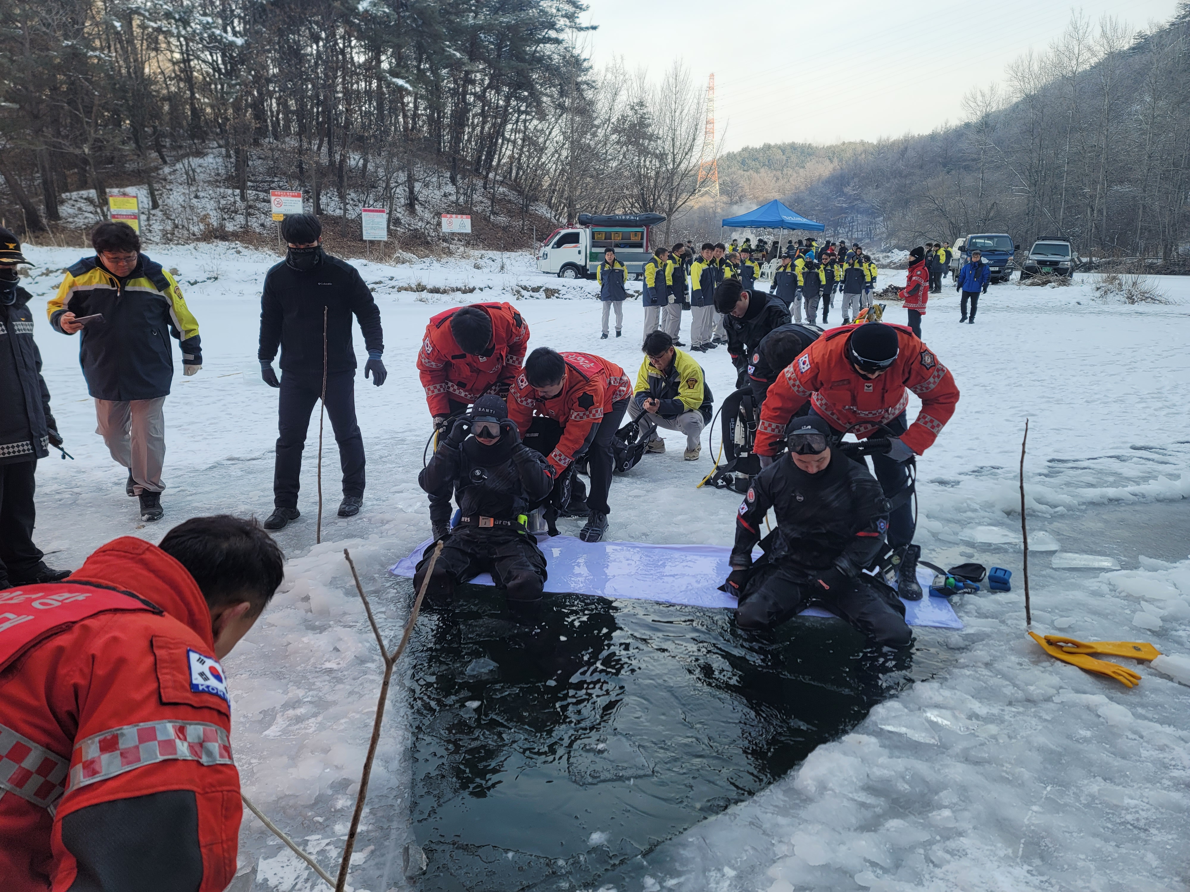 동계 수난사고는 낮은기온과 얼음 등으로 인해 일반 수난사고와 양상이 전혀 다르기 때문에 철저한 사전 훈련이 더욱 중요합니다!