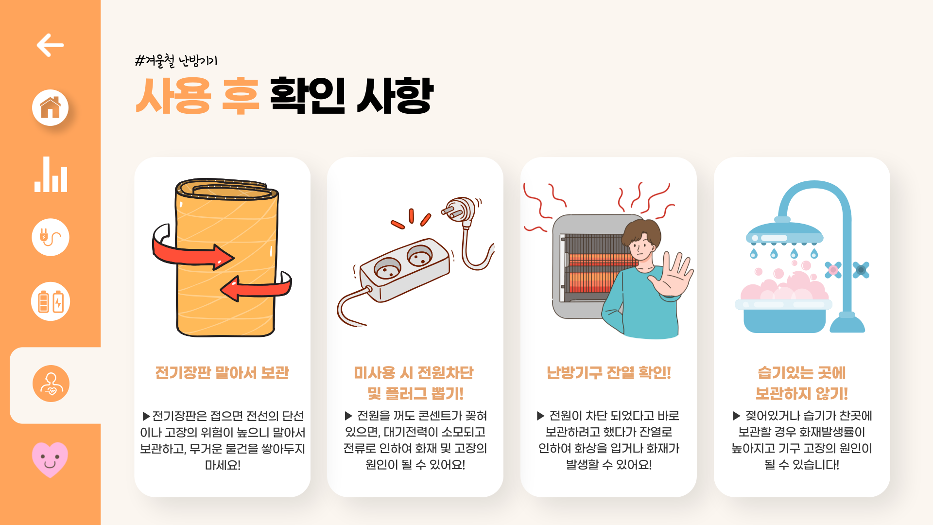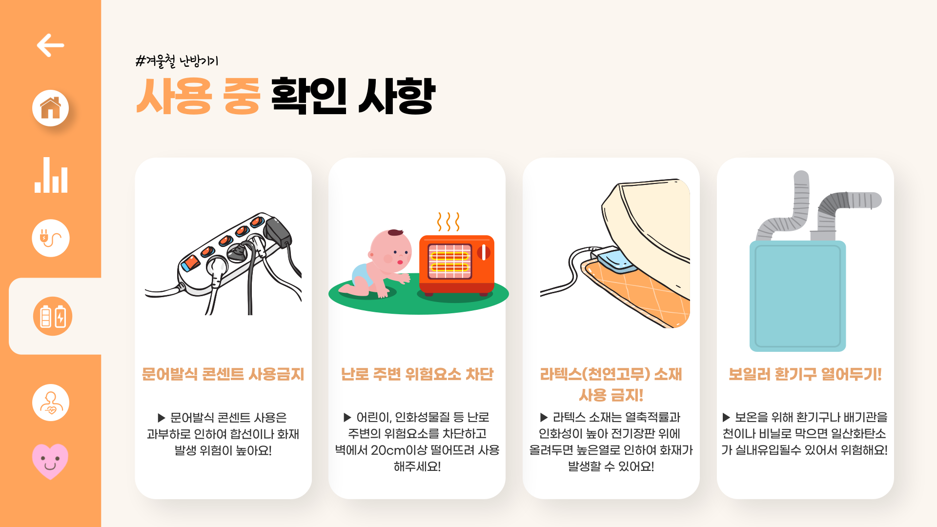 올바른 난방기기 사용으로 안전하고 따뜻한 겨울을 보내시길 바랍니다!