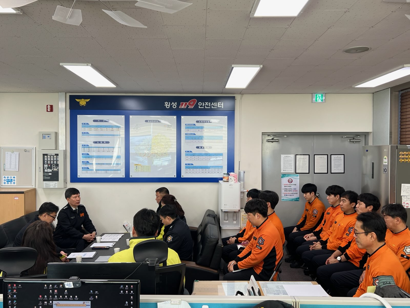 업무보고 및 직원들의 애로사항을 들으며, 횡성군민의 안전과 횡성소방서 직원들의 복무환경 개선을 위해 노력하는 횡성소방서가 되겠습니다.