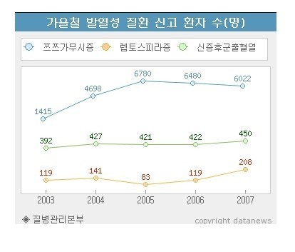 주로 야외에서 활동하는 농부등의 사람에게서 발병하기 쉽고, 가을철 산행등에서 그리고 성묘를 가는 추석을 전후하여 전국 각지에서 많이 발생한다고 하네요.