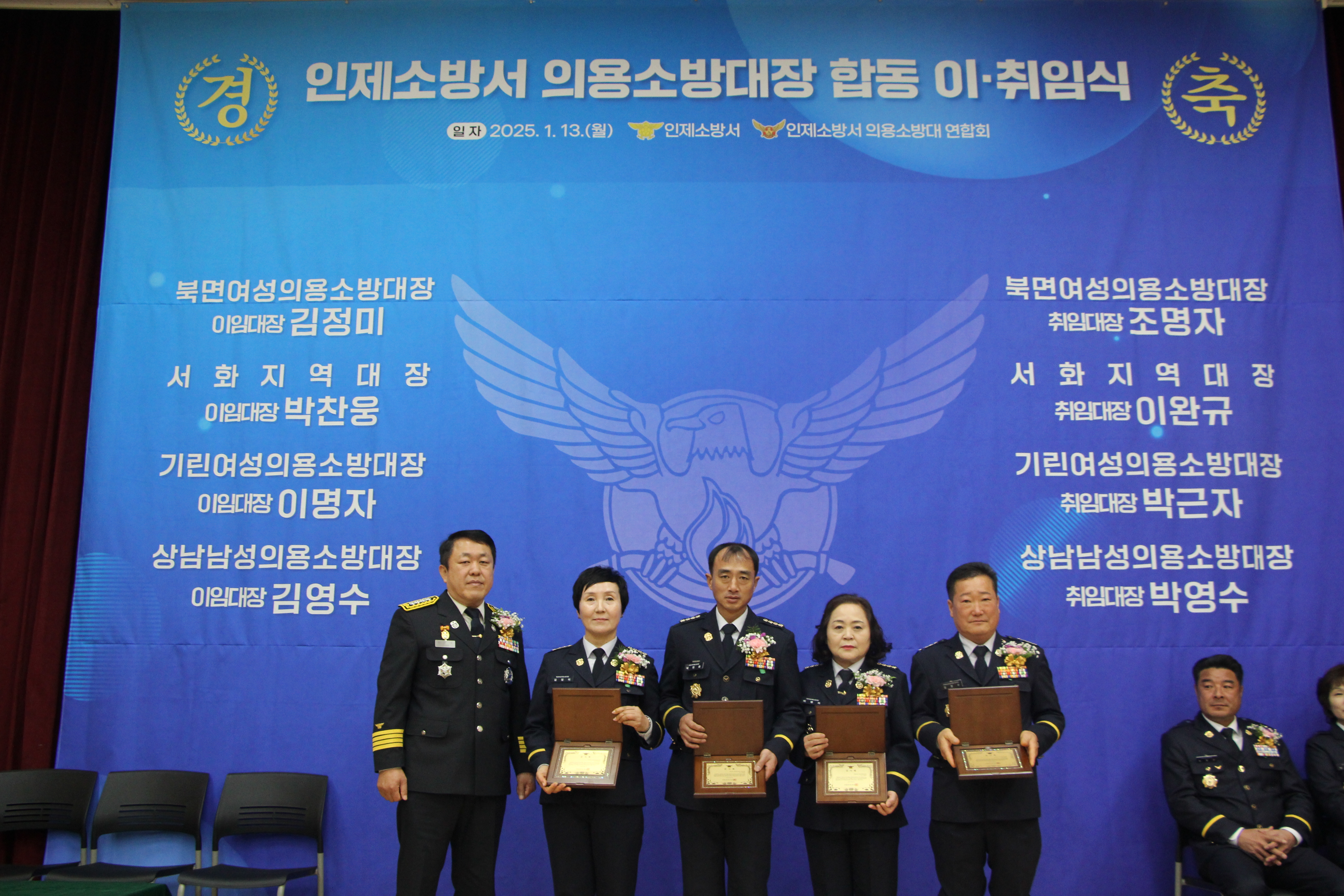 금일 인제소방서 의용소방대 통합청사에서 의용소방대장 합동 이·취임식을 실시하였습니다.