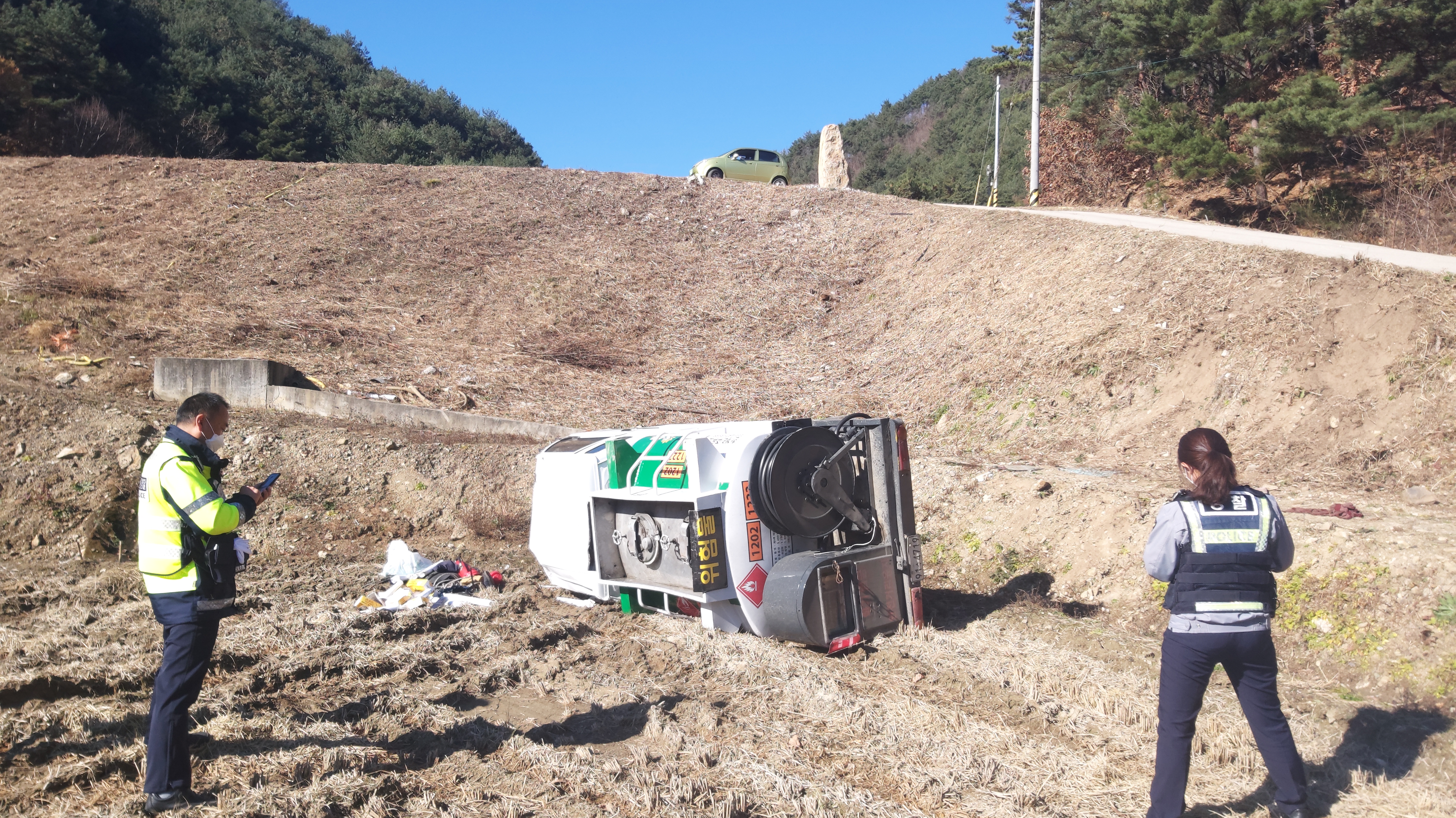 7. 특이사항: 사고차량의 유류가 소량 유출되어 군청에서 피해조사 중