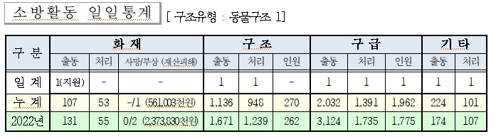 ○ 구조 1건(동물구조)