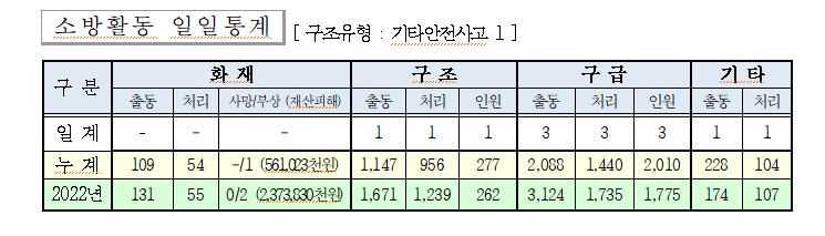 ○ 구조 1건(기타안전사고 1)