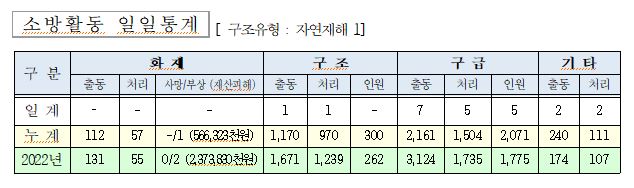 ○ 구조 1건(자연재해 1)