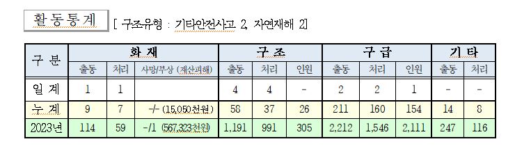 ○ 구조 4건(기타안전사고 2, 자연재해 2)